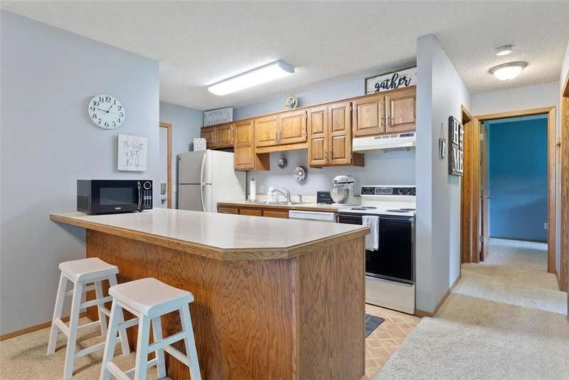 Own for less than rent! Great main floor one level townhouse with attached garage. Slider opens to patio overlooking large green space. Plenty of kitchen cabinets and counter space... Master bedroom has large walk-in closet. New washer and dryer, water heater, and dishwasher. Don't miss this one!