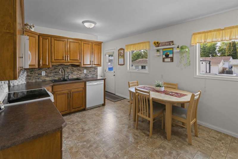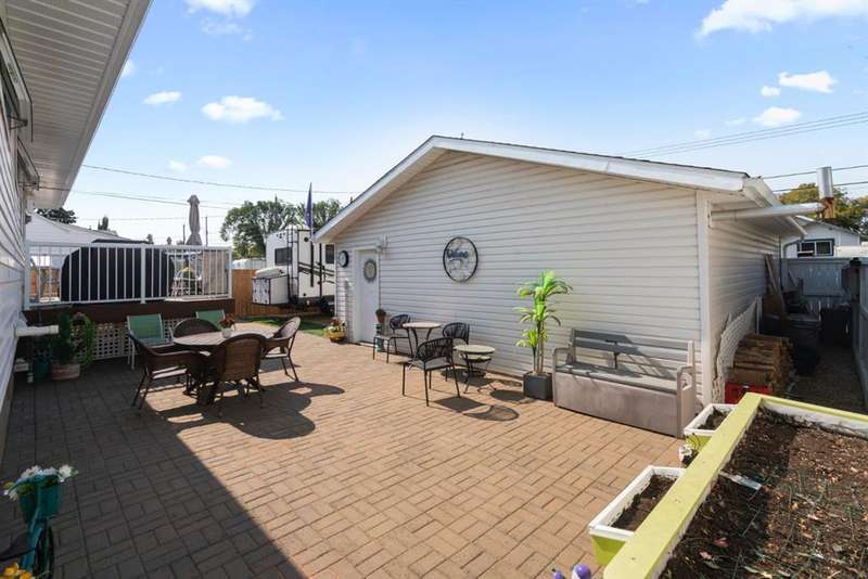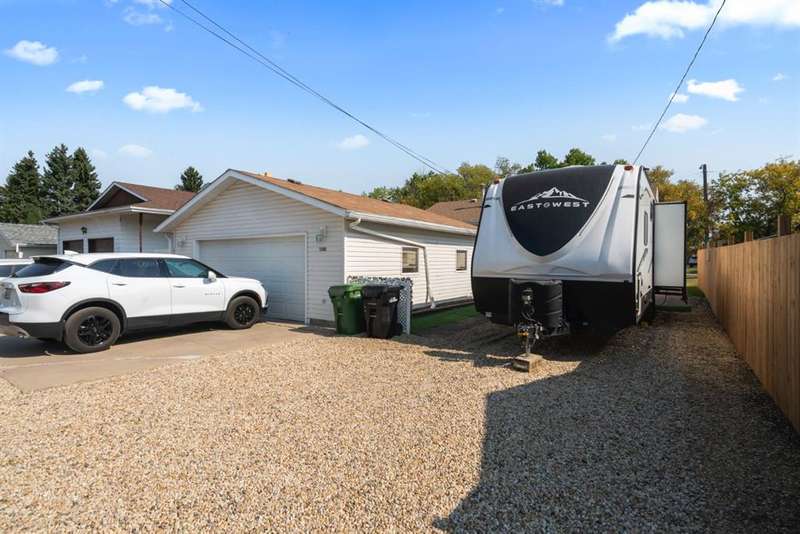 Welcome to this cute bungalow perfectly located across from St. Pats Elementary School with a playground, outdoor hockey rink, and new pickleball courts! Offering 5 bedrooms and 2 bathrooms, this home is ideal for a growing family. Recent updates include a new door, front patio, and new large picture window. The heated garage, RV parking, and lots of storage make daily living a breeze! Enjoy outdoor living on the vinyl deck with gas BBQ hookup, or relax on the beautiful stone patio in the partially fenced yard. A rare find that combines comfort, convenience, and upgrades in a fantastic location.