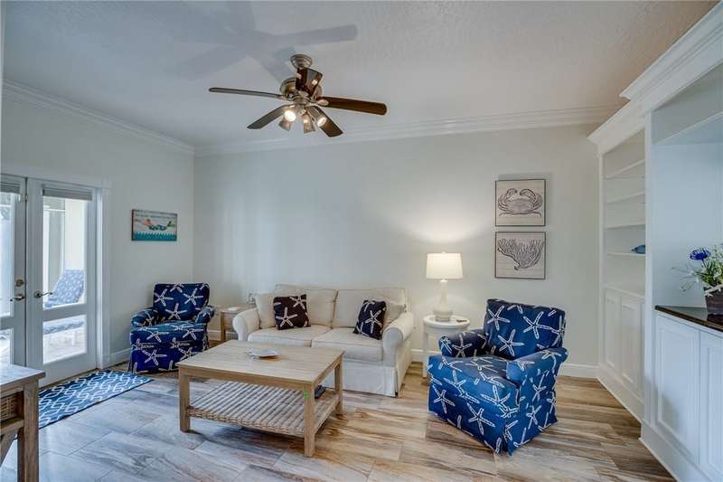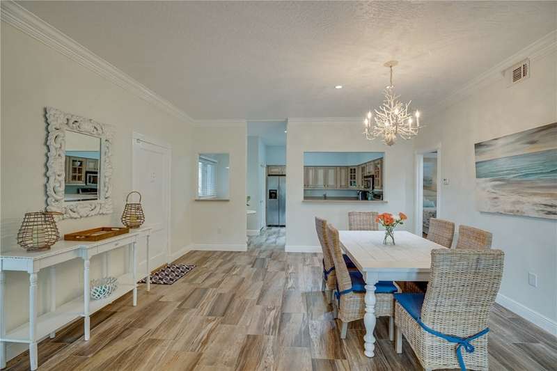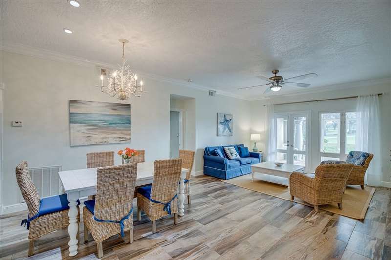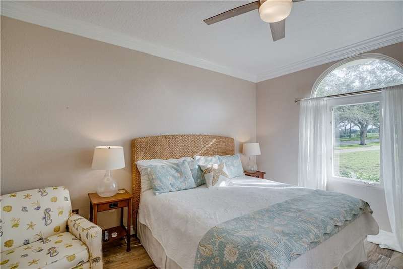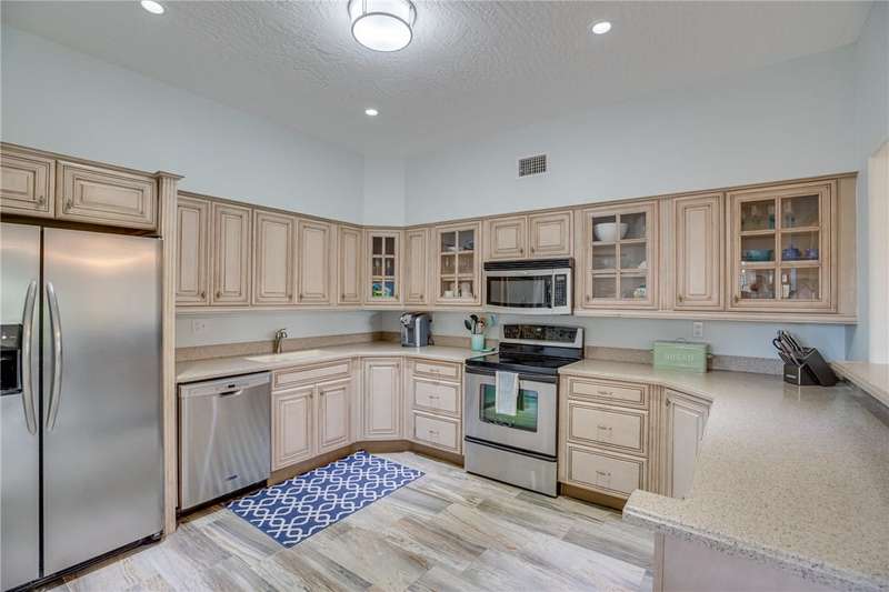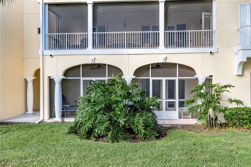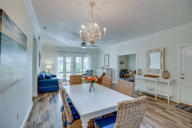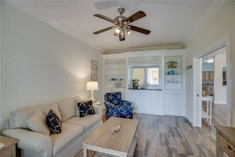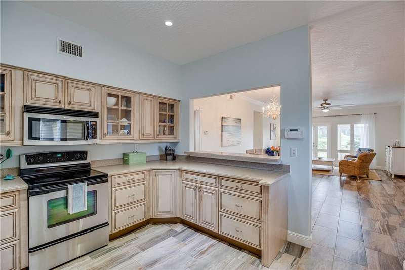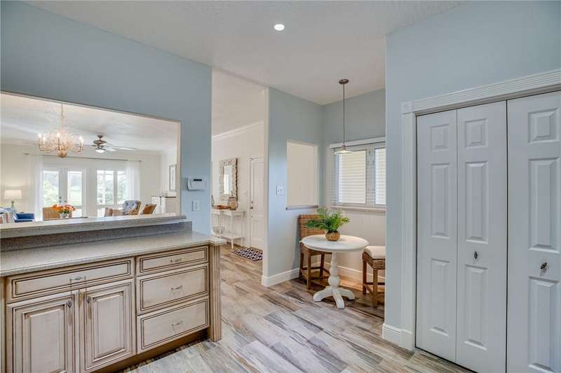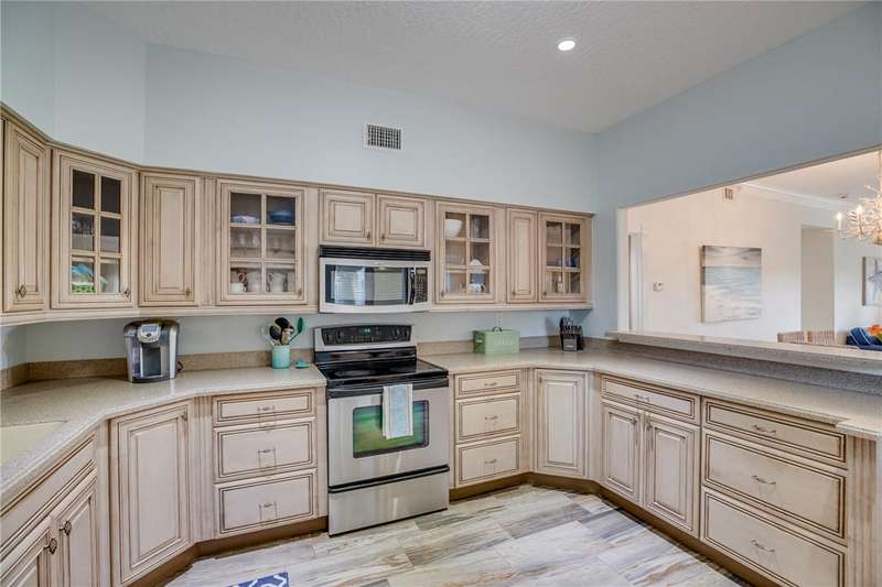 Expansive golf views from this 1st floor, 2/2 PLUS large den in Harmony Island! Comfortably remodeled interior includes custom kitchen cabinets and corian counters, crown molding, designer tile floors throughout. Built-in wall unit in den! Large screen porch, Carport and resort-style pool! Escape the cold here! Tennis and Social membership available! Access to brand new Grand Harbor Beach Club included in Membership!