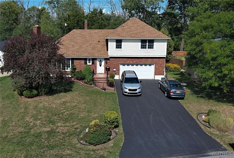 This well loved three bedroom Grand Island home is ideal for someone hoping for a water view out their front door, and a wooded view out their back door, at an affordable price! Introducing 1552 E Park Road, only steps from the Island's East River and Fisherman's Landing. First floor hosts entry foyer with half bath; large living room with updated gas fireplace and large southern facing windows; spacious dining room with built in shelves; updated kitchen with new cabinetry, solid surface countertops, separate dining area, and walk-in pantry; and cozy knotty-pine family room with huge windows overlooking private backyard. On the second floor you'll find three generously sized bedrooms, one full bathroom, and an unfinished attic space perfect for storage, or that could easily be converted into another bedroom, bathroom, office space, you pick! Fully fenced backyard includes mature landscaping, an extra large concrete patio, and an inground pool with newer saltwater filter! Two car attached garage. Full dry basement. Updated electrical panel (100 amp) Tear off roof (2015) Anderson windows throughout (2012) Original hardwood floors under most of the carpeting and new hardwood in the dining room. Central air conditioning! No delayed showings nor negotiations. Motivated Seller is looking forward to reviewing offers between $375,000 and $425,000.