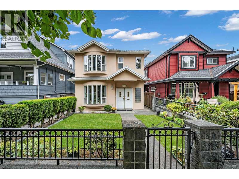 This spacious and well-maintained two-level front duplex offers a functional layout with living, dining, and kitchen areas on the main floor, and three bedrooms upstairs. Features include double-glazed vinyl windows, a durable concrete tile roof, in-floor radiant heating, and 9-foot ceilings on the main level. Enjoy the convenience of a private 1-car garage and a large, fully fenced yard. Located just a short walk to Trout Lake Community Centre, Broadway SkyTrain Station, schools, parks, restaurants, and shops. A rare opportunity to own in one of Vancouver´s most vibrant and connected neighborhoods. Open House Sept. 27th from 12:30 to 2pm. (id:58403)