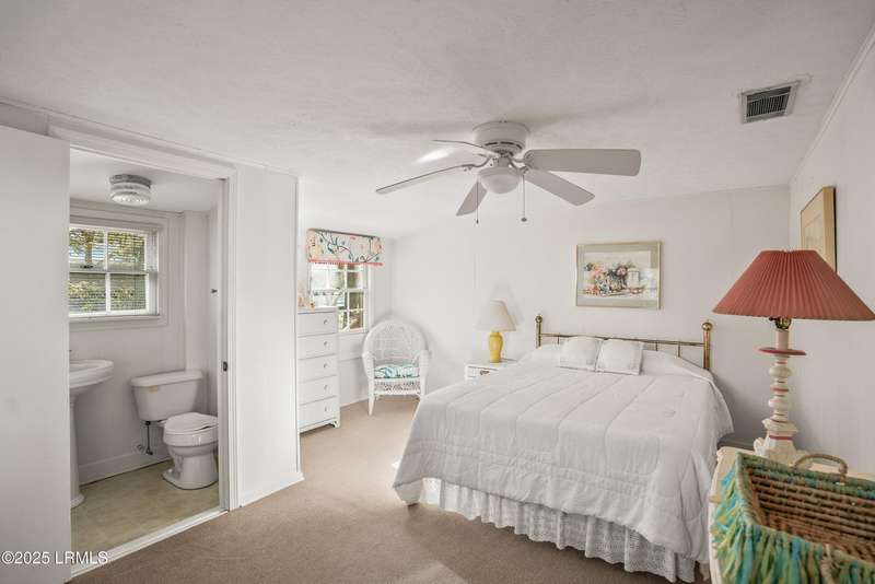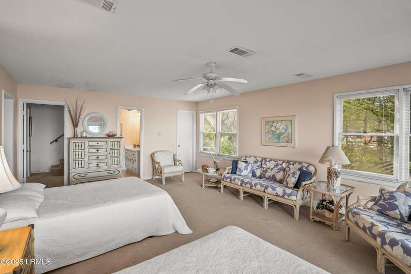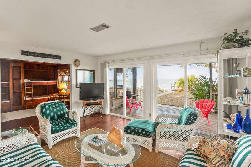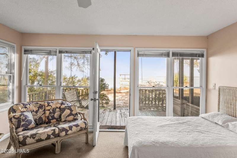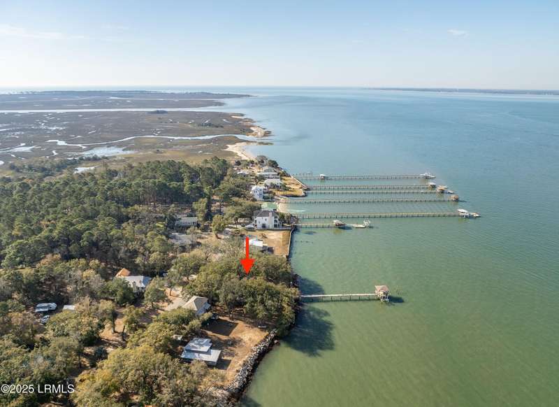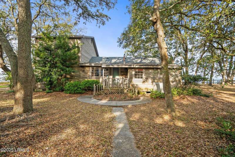 Nestled in a rare coastal setting of Lands End, 45 Bay Pt presents a unique deep water opportunity to own a stunning property with a private dock, complemented by two lots totaling nearly an acre. Positioned on the picturesque southwestern shore of St. Helena Island, this property boasts approximately 250 feet of stunning deep water along the Beaufort River and Port Royal Sound. Although needing some repair, a dock is in place with a pier head roof and boat lift. Oak trees gracefully adorn the landscape, offering shade and beauty, while the incredible water views create an enchanting backdrop that enhances the property's appeal. The residence itself encompasses just over 2,000 square feet. The living and dining areas are illuminated by natural light and framed by breathtaking water views. Each generously sized bedroom has its own en-suite bathroom, providing convenience and privacy. One of the downstairs bedrooms stands out with an entire wall of windows that frame panoramic views of the waterfront, offering direct access to a wooden deck, perfect for enjoying serene mornings or vibrant sunsets. The upstairs bedroom features expansive windows and a private outdoor balcony that overlooks the tranquil waters, making it an ideal spot to unwind and soak in the beauty of nature. The home offers plenty of outdoor living with both wooden decks and a screened porch. Seize this incredible chance to transform this house into your coastal paradise! Let your imagination run wild as you create a serene sanctuary that perfectly captures the essence of seaside bliss! The home is being sold AS-IS, no repairs will be made. This material is based upon information, which we consider reliable, but because it has been supplied by third parties, we cannot represent that it is accurate or complete, and it should not be relied upon as such.