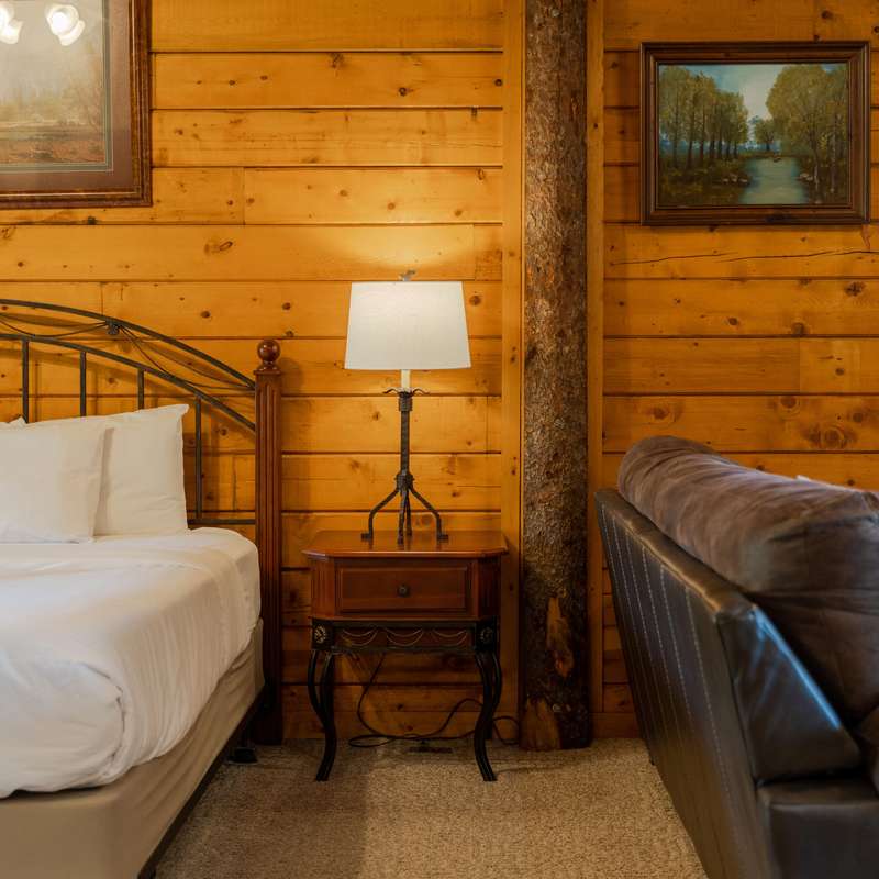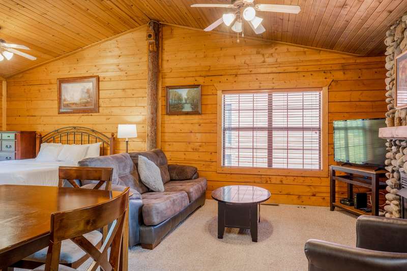 Nestled among the trees in the heart of Branson, Missouri is this charming one-room log cabin that offers a peaceful retreat just moments from all the excitement of the famous 76 Strip. Whether you are here to catch a show, shop at Tanger Mall, or explore the Ozarks, you will be close to it all--yet tucked away in your own private woodland escape. Built with log cabin charm, this cozy hideaway features warm wood interiors, classic cabin-style furnishings, and all the rustic touches that make you feel right at home. Unwind in the large garden tub after a day of adventure, or enjoy the convenience of an easy access, almost walk in shower. On cooler nights curl up by the beautiful rock fireplace and let its gentle glow set the mood for a relaxing evening. Perfect for a romantic getaway or a solo retreat, this cabin is a true Branson gem--where comfort meets convenience and nature surrounds you. Use it for your self and vacation rental.
