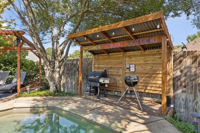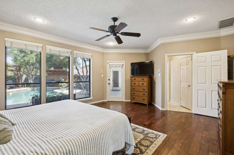 Welcome to 2424 Cross Timbers, a stunning four bedroom home situated on a beautiful corner lot in the desirable Woodridge Subdivision of Arlington! This residence blends elegance, comfort, and convenience, offering a thoughtfully designed floorplan with functional living spaces and modern updates. Inside, youll be greeted by gorgeous travertine flooring, decorative lighting and two spacious living areas filled with natural light. The open concept kitchen is a chefs delight, featuring granite countertops, an electric cooktop, built-in oven, microwave and abundant cabinetry. A large breakfast area overlooks the backyard, making this space ideal for family gatherings or entertaining. The main level primary suite is a true retreat with hardwood floors, a peaceful sitting area, direct backyard access, and a luxurious en-suite bath complete with dual vanities, a garden tub, and separate shower. A convenient guest bedroom is also located downstairs, while two additional bedrooms upstairs provide flexibility for family, a home office, or guests. Step outside to your own private oasis featuring a sparkling pool, lush landscaping, and plenty of patio space - perfect for barbecues, pool parties, or relaxing in total privacy. The pool has a variable-speed pump less than a year old and the light was recently replaced with an LED bulb offering full color control. The sprinkler system is managed by a Wi-Fi controller for added ease. Several windows were replaced within the past year, ensuring energy efficiency and curb appeal, and the main water line from the city to the house was replaced approximately three years ago. The three-car garage and corner lot provide ample storage and impressive curb presence. Living in Woodridge means enjoying a vibrant neighborhood in the heart of Arlington, just minutes from shopping, dining, and entertainment, plus world-class attractions like AT&T Stadium, Globe Life Field, and Six Flags Over Texas, nearby parks, golf courses and Joe Pool Lake.
