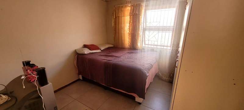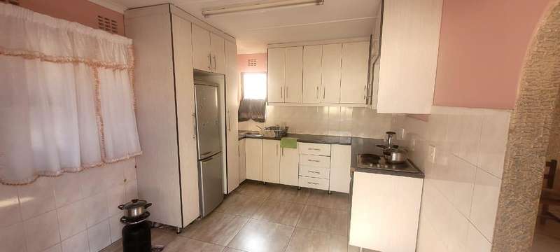 Modern home features high-quality finishes and comfortable living spaces. It includes a spacious lounge, a well-fitted kitchen, three bedrooms, and a separate bathroom and toilet. Additional amenities are a single garage, an outside toilet, and a fully walled perimeter with lockup gates. Conveniently located in a central area, it is close to everyday amenities, schools, and taxi routes.