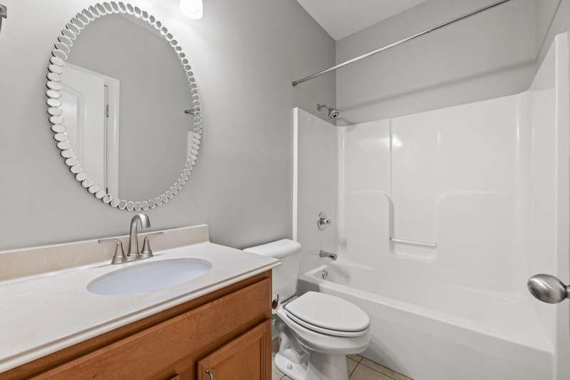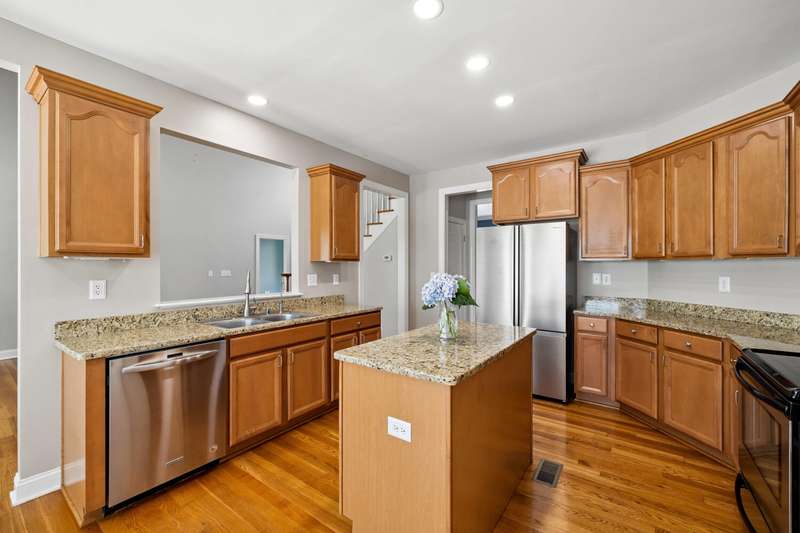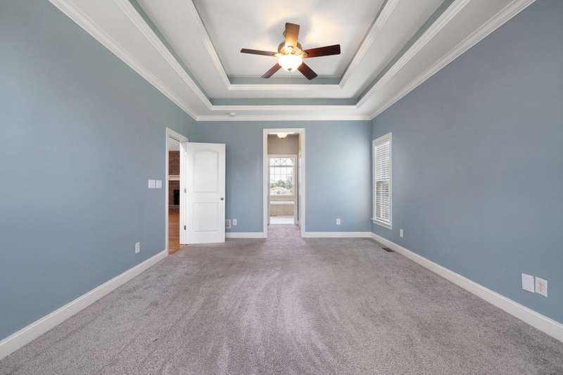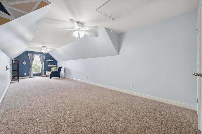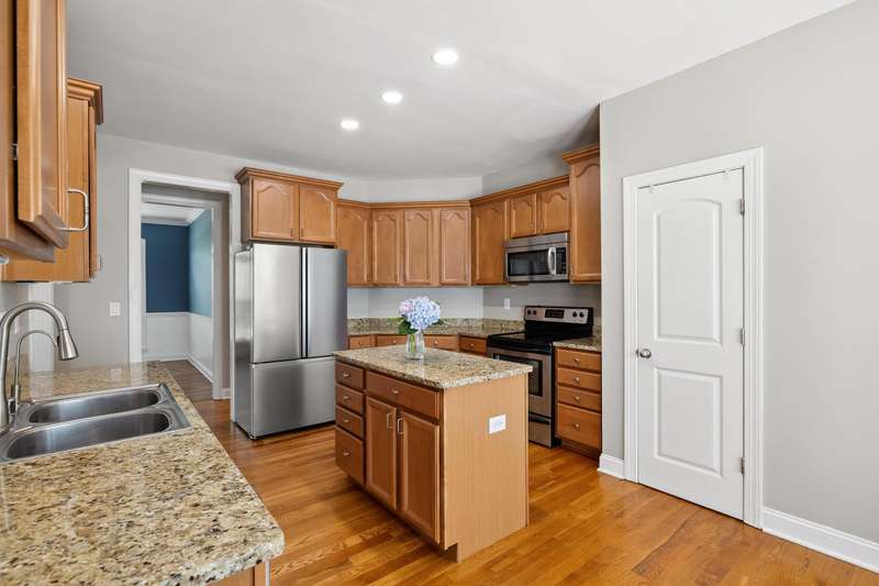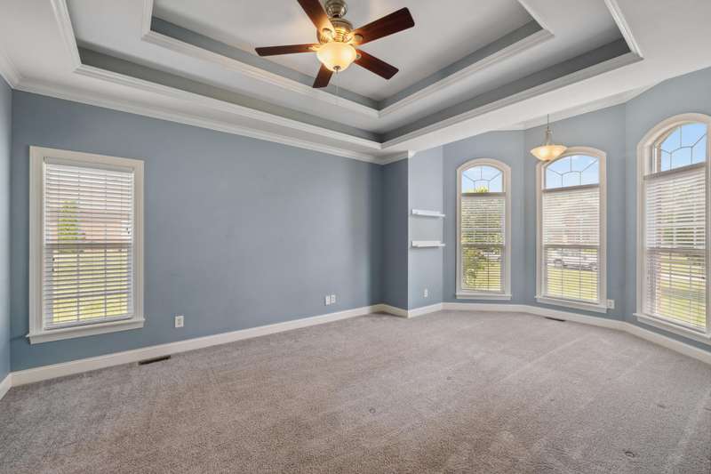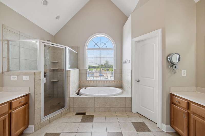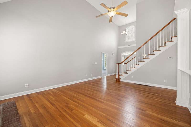 Set on a picturesque one-acre lot in Nicholasville's quiet Hickman's Point neighborhood, this spacious home offers comfort, functionality, and room to relax both inside and out. A welcoming two-story foyer and hardwood floors set the tone upon entry, leading into a vaulted living room filled with natural light and anchored by a brick fireplace. The kitchen features granite countertops, an eat-in area, and direct access to the expansive backyard. Outside, enjoy summer days on the large patio, complete with a heated saltwater pool, multiple seating areas, and a tanning deck, ideal for gatherings or quiet evenings. The first-floor primary suite is a true retreat with a double tray ceiling and accent lighting, dual closets, double vanities, a soaking tub, and a tile shower. Also on the main level, you'll find a second bedroom, a full bathroom, a formal dining room, a laundry area, and access to the three-car garage. Upstairs, three additional bedrooms share a full bathroom. The finished basement expands your living space with a bar area, pool table, theater-style seating, a full bathroom, and two large unfinished rooms perfect for storage. Offering space, updates, and an inviting layout, this home is ready to enjoy in a peaceful, established neighborhood, just minutes from local amenities and an easy drive to Lexington.