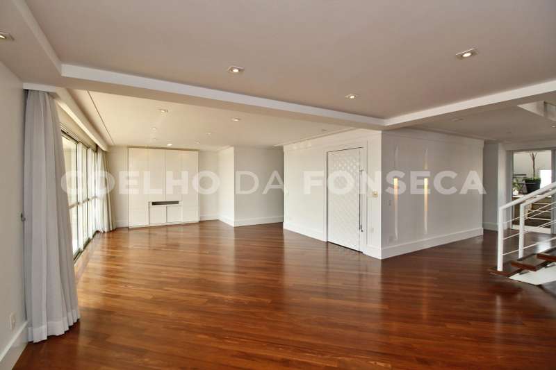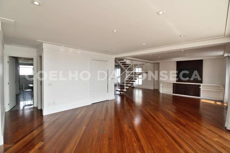 Cobertura no bairro Indianópolis com 292m² área privativa/útil, 4 dormitório(s), 4 suíte(s), 4 vaga(s), 6 banheiro(s), piscina, churrasqueira, terraço, duplex, ar condicionado, dep. de empregados, varanda gourmet, pé direito duplo.