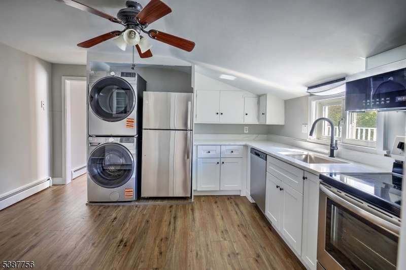 Charming renovated apartment in center of Mendham. Freshly carpeted and painted. Kitchen features brand new electric stove, microwave, refrigerator and dishwasher as well as new stackable washer/dryer. Large shower with seamless glass enclosure in bathroom. Primary bedroom has adjacent small room suitable for office or large closet. Living room with sliding glass doors which open to spacious deck and stairs to first level and parking lot. Enjoy in-town living, with easy access to shopping and restaurants, and a short drive to Morristown and train to NYC.