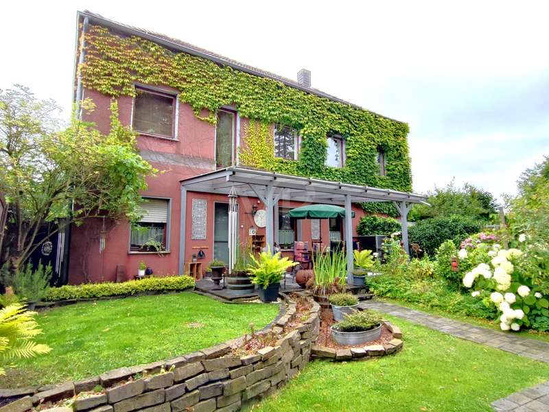 Discover this extraordinary 2-family house in Xanten-Lüttingen, which has a fascinating past as an old school! This special property with the charm of days gone by offers a unique atmosphere. It is ideal for a large family or as a "multi-generational home". The two apartments with a total living area of approx. 147 m² have separate entrances and can therefore be used independently of each other, which offers ideal conditions for privacy and flexibility. On the other hand, the two apartments can be converted into a large family home with a few modifications. The first floor apartment consists of a bright living room with access to the terrace, a good-sized dining room, an open kitchen with space for a dining table and a bedroom. The brightly tiled bathroom is suitable for the elderly and has a level-access shower. The covered terrace is sheltered from the wind and invites you to sunbathe and barbecue and offers a view of the beautifully landscaped garden. The 2nd apartment on the upper floor is largely identical in construction. In contrast to the first floor, the bathroom is equipped with a bathtub. This apartment also has a garden area: laid out as a flowering bee paradise with a small seating area. The garden is low-maintenance with shrubs and trees. The plot covers approx. 667 m². Two garages and two parking spaces complete this attractive offer. The house is located in a quiet and family-friendly area close to the Xantener Südsee with good connections to the infrastructure. The surroundings complement the historic charm of the house and offer an idyllic living atmosphere. Discover the special charm of this house and be enchanted by its unique history!