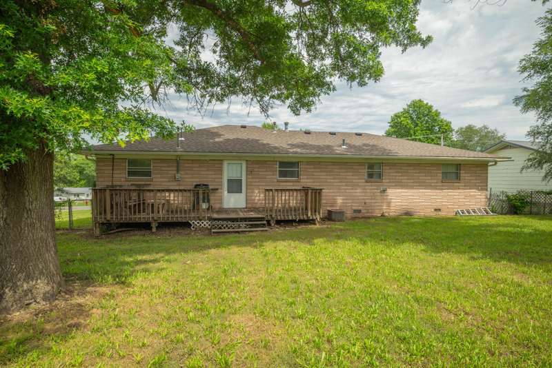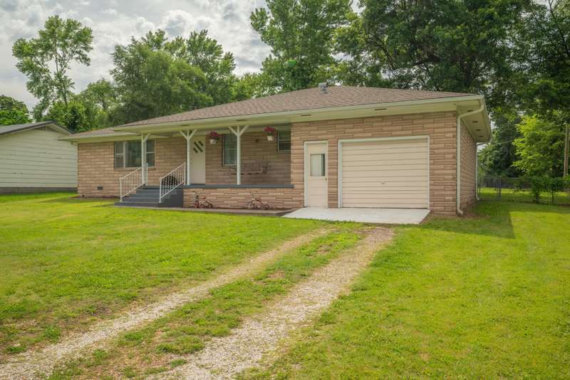 $5,000 SELLER CREDIT offered towards a lender interest rate buy down! Discover the charm of small town living in this beautiful 3-bedroom, 2-bath brick ranch style home. Boasting an oversized backyard and gorgeous mature shade trees, you won't find a more peaceful place in the city limits. You can relax on your porch swing on the covered front porch, or take to the backyard and all it has to offer. Custom countertops have been installed in the kitchen, tile flooring is throughout the kitchens and bathrooms, and the extended living room is the perfect arrangement for entertaining (and that oversized couch you can't give up!). It's a short walk to Goodman Elementary, while still being out of the flow of school traffic. Many updates have been taken care of - the roof is only 4 years old, breaker box is NEW. Call your favorite agent today to see this one!
