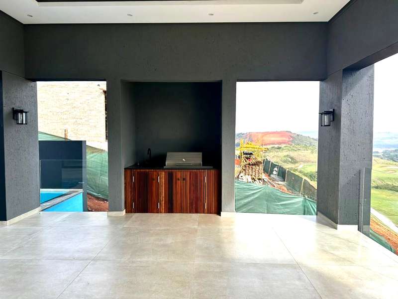 Modern home in secure estate with panoramic golf course views! Luxurious family living and entertainment home located in the newly sought after Zimbali Lakes Estate. While entering the dwelling the view flows over the double volume living area to an endless valley view leading down to the living and entertainment areas. The indoor and outdoor living spaces has a fourth bedroom / study (en suite), two open plan lounges, dining room, kitchen and separate scullery, an indoor cinema and wine cellar. The panoramic undercover patio overlooks the 7th hole (Par 5) with a private enclosed entertainment area directly onto the pool with a glass viewing panel. The area is complimented with a timber deck and wrap around balcony with frameless glass balustrade. The 3 bedrooms on the first floor with private external breakout areas boasts a full en suite bathroom and walk in dressing room, which looks out to the sweeping valleys and hills of greenery. Three automated garages and sufficient parking and turning facility. Zimbali Lakes Resort is a multi generational and pet friendly estate offering luxury living. The bustling retail piazza, family focused facilities, serene green spaces and vast lakes means you can indulge your every whim, all within the safety and comfort of Zimbali Lakes Resort. Embrace the Zimbali Beach Club with a resort style pool boasting sublime signature dining, or the take a stroll down the boulevard style walkways through the Zimbali Water Club offering a choice of retail stores and destination restaurants as well as convenience stores for residents. Last but not least Zimbali Lakes will have it's own Sports and Recreational facilities for all ages and will accommodate competitive and recreational levels in various sporting disciplines.