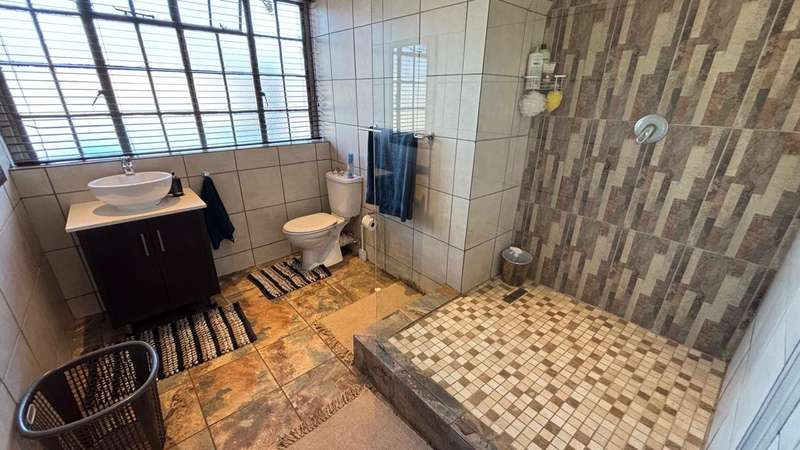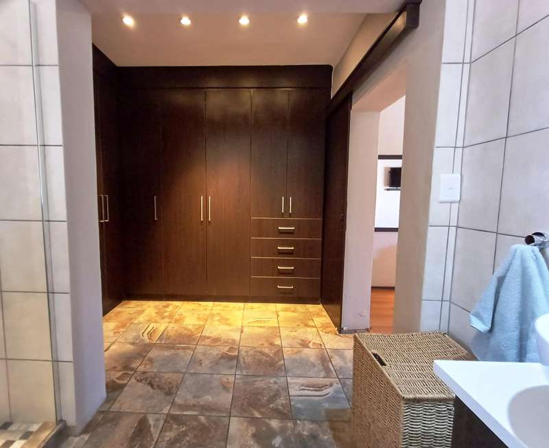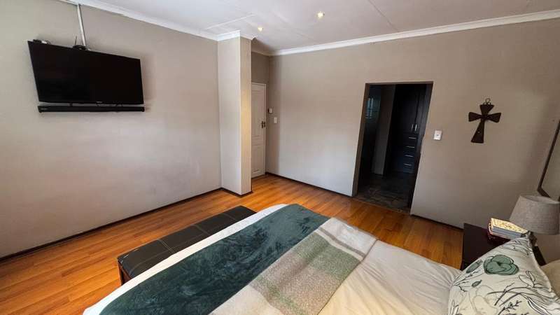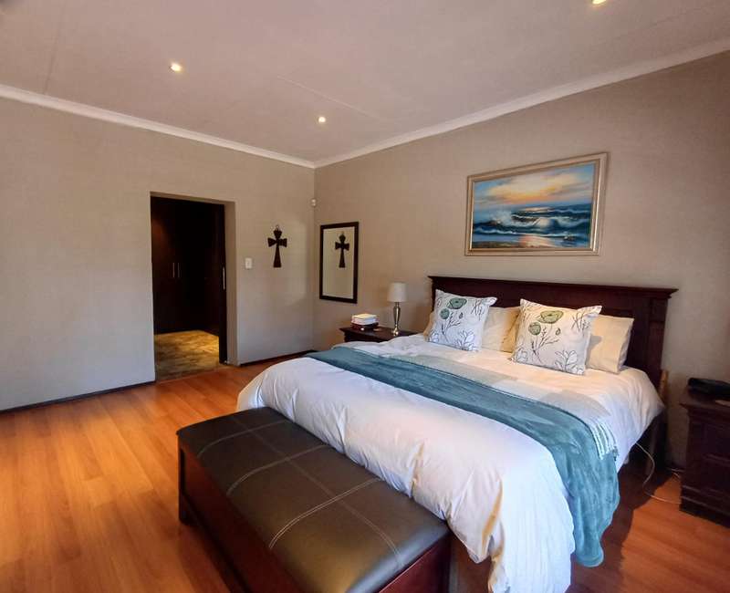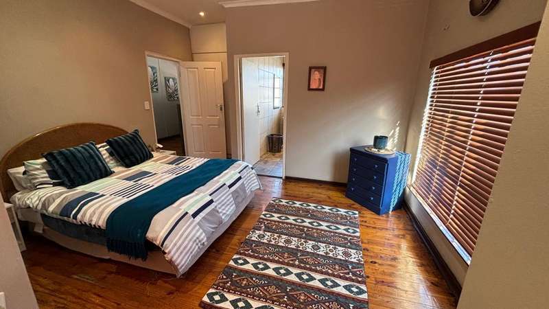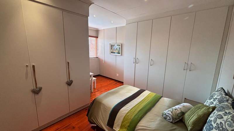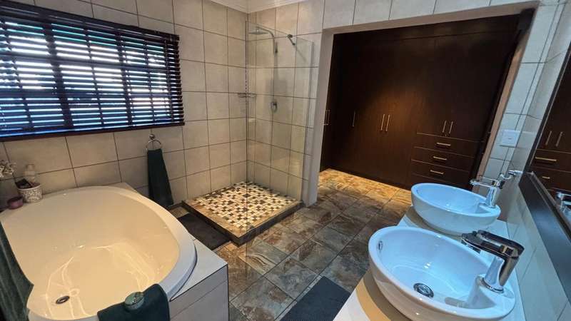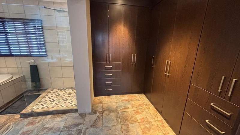 Spacious 4 bedroom home with pool and entertainment area. This home comprises of 4 bedrooms with built-in cupboards Two en-suite bathrooms, one upstairs and one downstairs Upstairs and downstairs en-suite bedrooms which is ideal for guest accommodation Spacious open plan lounge and dining area Modern kitchen with a breakfast nook, granite tops and loads of cupboards for all your storage Entertainment area with a built-in braai overlooking a sparkling pool Spacious pet friendly garden with a Wendy house for extra storage Staff accommodation and a separate laundry room Single garage plus a double carport