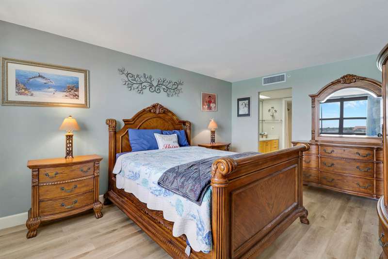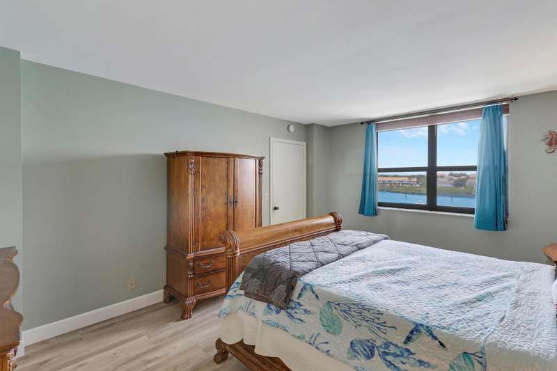 Amazing unobstructed views of blue water tides, ocean and river, sunrise and sunsets. Watch the dolphins and turtles and manatees swim by! THE BEST waterfront building in THE BEST waterfront community in Jupiter. Split Bedroom plan, Private marina with up to 40'+ dock spot available for rent or purchase, when available. Gated Entry; Carport Parking with 3' x 8' (+/-) Storage unit...plus extra storage on 6th floor storage unit. Private Tiki, Tennis, CLUB House & Community Pool and so much more. Second bedroom photos digital stage.