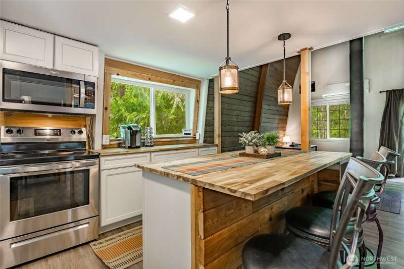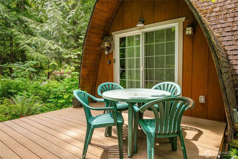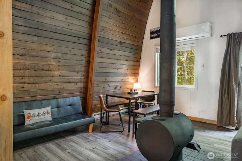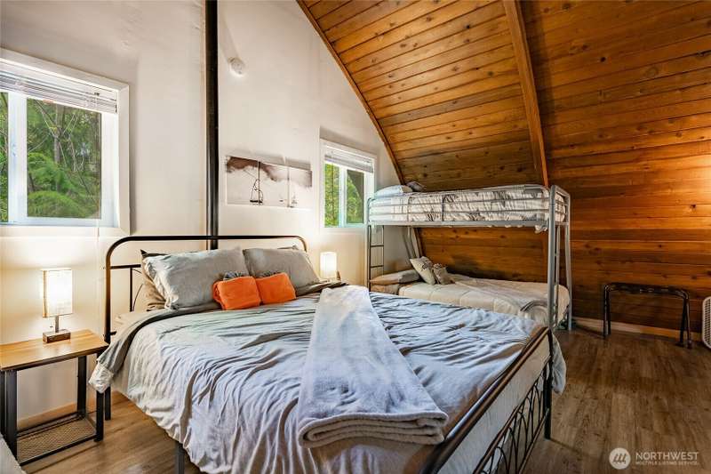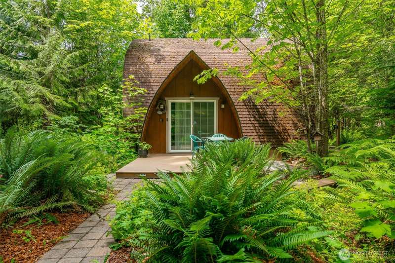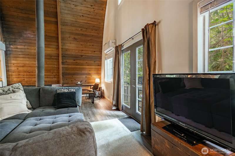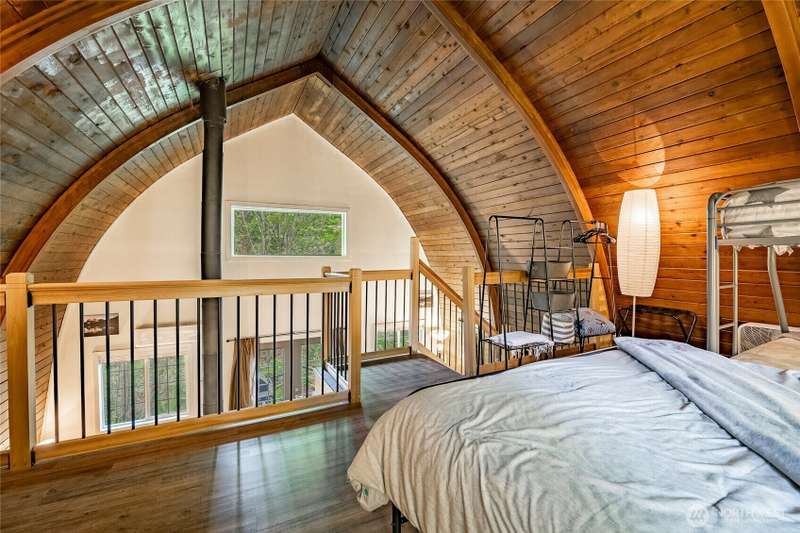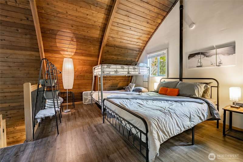 Welcome to this classic Gothic Arch home, where modern comfort meets rustic charm. Timeless cedar craftsmanship, two-story arched beams, and a loft-style design create contemporary appeal. Truly turnkey, this vacation rental includes appliances, furnishings, and contents. Energy-efficient features include app-controlled Nest, mini-split heat & A/C, and on-demand tankless hot water. A pre-wired gravel pad awaits your hot tub. Enjoy a huge corner lot with paths, fire pit, shed, 2 low-maintenance Trex decks, picnic table, and 2 BBQs—perfect for entertaining and relaxing in style. 1% lender credit(up to $7500) offered through my preferred lender, AmyBaker@movementmortgage.
