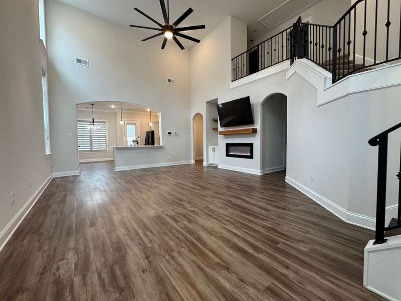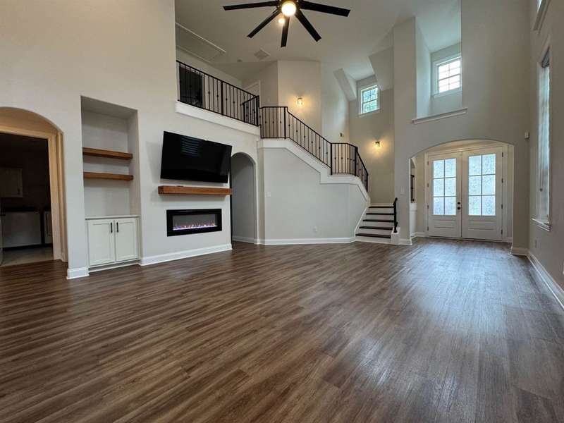 NO City Taxes. The LOST TRAIL subdivision is in a quiet gated community. There is plenty of closet and storage space. In this 4 bedroom, 3 bath home boasts the privacy of the master bedroom on the first level. Double front door entry, fireplace and plenty of natural light. This is an open floor plan with modern designs from the black spiral loft staircase to the relaxing soaking tub in the master bath. There is a covered patio and two-car rear load garage. All appliances (stove, refrigerator, dishwasher, microwave and washer/dryer stays). The security system and an added bonus of three wall-mounted televisions. MOTIVATED SELLERS.