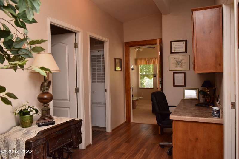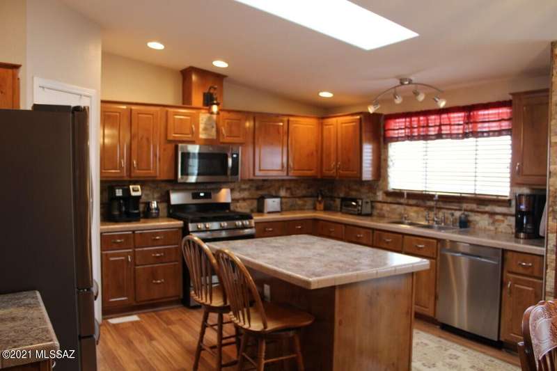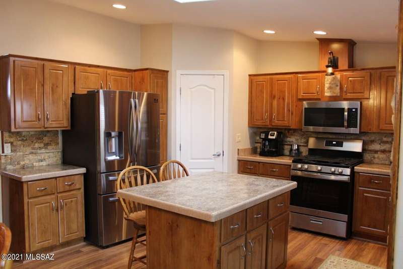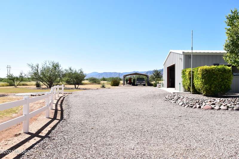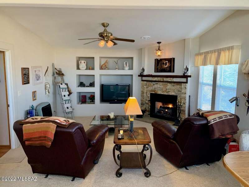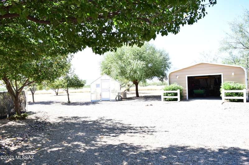 PRISTINE INSIDE & OUT! Spacious 4 bdrm, w/huge family rm/den, charming fireplace & built in entertainment center. Efficient kitchen w/all appliances, walk-in pantry, center island & miles of counters & cabinets. Dining rm w/built in china hutch. Laundry rm incl W&D, utility sink & cabinets. Newer flooring, ceiling fans throughout, wood blinds, exterior painted 2016. 40'X50' Mueller 3+ car garage w/guest quarters/studio apartment incl 3/4 bath. Screened in porch, rear deck w/firepit & hot tub. Additional garage, and 2 more metal carports=covered parking for 8 vehicles! Numerous fruit trees, cement walkways, lawn, pine trees etc. on irrigation. Green house. Full RV hook up. Fenced w/electronic gate. Call for detailed list of amenities.