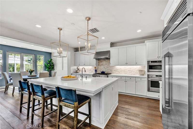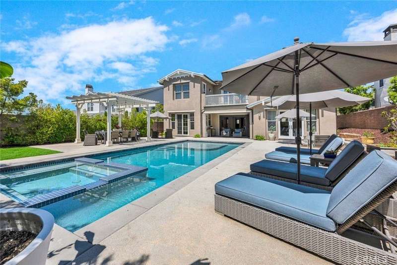 This is the one! Adorned with sophisticated elegance this Residence 5 in Crystal Downs North in San Juan Capistrano on a gated cul-de-sac street has been fabulously upgraded and enhanced for relaxed living and entertaining in this absolutely perfect floor plan! With 2 primary suites, one up and one down allows for flexible living lifestyles. There are 5 beautifully appointed en-suite bedrooms as well as a main floor guest powder room. You are greeted by dual porches, to take in the breezes and views. Upon entry handsome wood flooring, custom wood shiplap walls, custom wood ceiling beams and custom built-in entertainment centers in both the upstairs and main floor family rooms! The primary suite with walk-in closet with custom built-ins, dual sinks, oversized shower and separate soaking tub awaits. The well appointed kitchen with an oversized island offers bar seating, Quartz countertops, double ovens, 6 burner range with griddle, butlers area, walk-in pantry and charming eating nook is a chef’s dream! The folding glass door in the family room erases the line between indoor and outdoor living. Enjoy the resort like backyard complete with private saltwater pool and spa with enormous baja shelf and jogging/swim lane. The built in pergola provides an inviting space for outdoor dining and enjoy the bounty from your fruit trees and vegetable boxes! Residents also have access to Club Pacifica, which offers a resort -style saltwater pool, spa, cabanas, fitness center, fireplace and barbeques. Enjoy walks along the many trails and relax in Adirondack chairs strategically situated to take in the breathtaking views of the ocean and harbor!