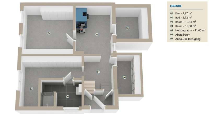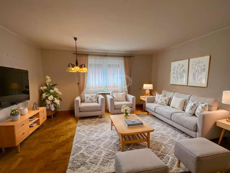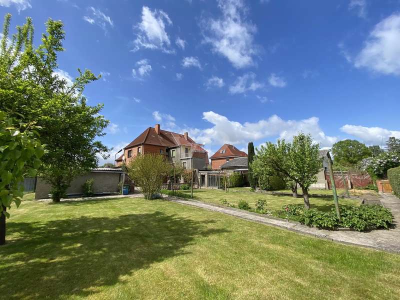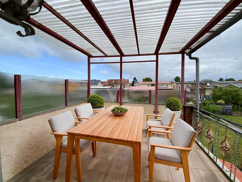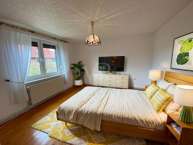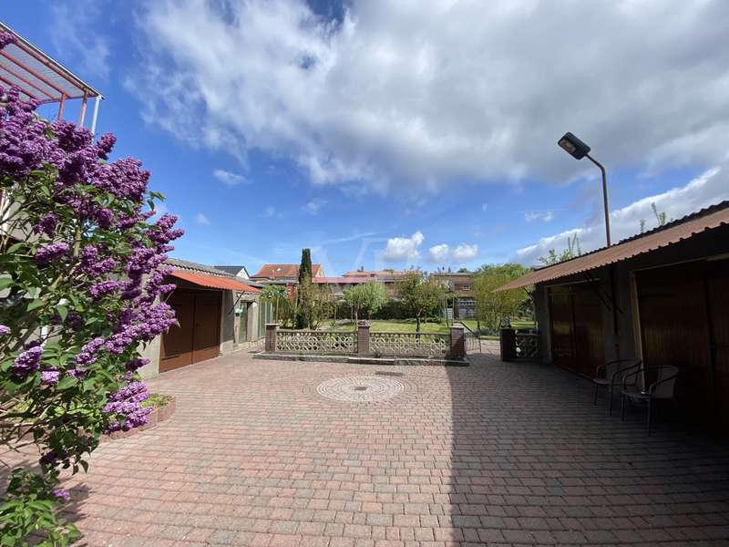 This well-kept semi-detached house offers a well thought-out room layout over three floors and is ideal for families, couples or multi-generational living. With a living space of approx. 130 m² and additional usable space in the basement, the property combines spacious living with functional utility rooms. Upon entering the house, you are greeted by a bright entrance area. A few steps lead to the mezzanine floor of the property. Two well-designed rooms and a separate kitchen await you here. An additional room, which is accessible via the extension, is ideal as a dining room. There is also a small WC on this level. The upper floor has two further spacious rooms, a kitchen and a daylight bathroom with shower. Particularly noteworthy is the covered terrace, which is directly accessible from the bathroom - ideal for relaxing outdoors with a view of the greenery. With over 48 m², the basement area offers a variety of uses. There is a boiler room, two further storage rooms - some with natural light - a bathroom with shower and a practical hallway with direct access to the annex and garden area. The rooms are ideal as storage space, for hobbies or as a utility area. The room heights are up to 2.72 m in the living area and convey a generous feeling of space. The well-kept condition of the property allows for individual modernization according to your own ideas - the solid building structure provides the ideal basis for this. The spacious plot of approx. 914 m² is a real highlight of the property: lovingly laid out and very well maintained, it offers plenty of space for relaxing, gardening or playing. A greenhouse invites hobby gardeners to grow their own plants and perfectly complements the green ambience. Several outbuildings and garages provide ample storage space and offer a variety of uses - whether as a workshop, hobby room or for vehicles and garden tools. A paved courtyard area connects the individual buildings and creates a clear structure in the outdoor area. If you would like to find out more, please do not hesitate to contact us! We will be happy to present this property to you in full.