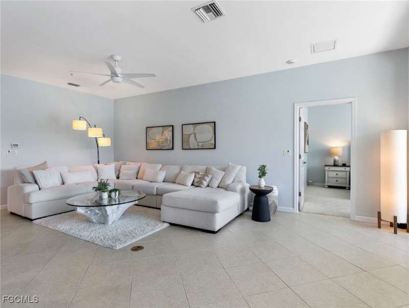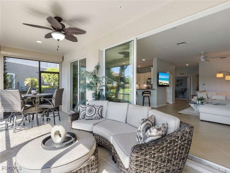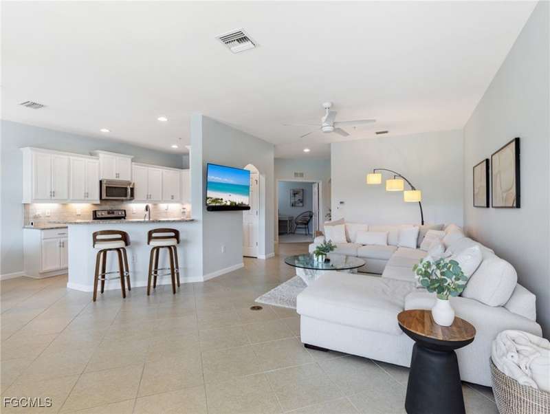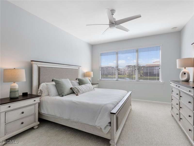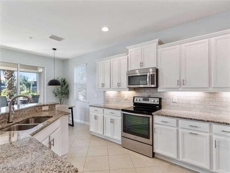 Discover the opportunity to reside in one of Southwest Florida's most sought-after communities-Somerset at The Plantation. This "Turnkey" first-floor condo features 2 bedrooms plus a den and offers more than 1,500 square feet of living space. Enjoy breathtaking views of lush landscaping and the expansive lake from your home. The main living areas of the condo are adorned with tile flooring, while the bedrooms are comfortably carpeted. The open and bright layout ensures abundant natural light throughout. The primary bedroom is designed for privacy, being split from the other rooms, and includes two spacious walk-in closets. Designer elements enhance the condo, such as a glass-etched entry door, a tile backsplash in the kitchen, and stylish tile on the outdoor lanai. The kitchen is equipped with granite countertops and stainless steel appliances, making it both functional and visually appealing. Step out onto the large, spacious lanai, perfect for relaxing and enjoying stunning western sunsets throughout the year. Electric hurricane shutters for protection and comfort. Affordable HOA fees cover insurance, cable, internet, water, and more. You are just minutes away from the impressive amenity center, which boasts a resort-style pool and spa, tennis courts, pickleball, a fitness center, and much more. For those interested in golf or additional social opportunities, the Country Club is available, with golf membership being optional. Somerset at The Plantation is conveniently located near fine dining, excellent entertainment options, premier shopping, Major League Baseball, and the Southwest Florida International Airport. Welcome home!