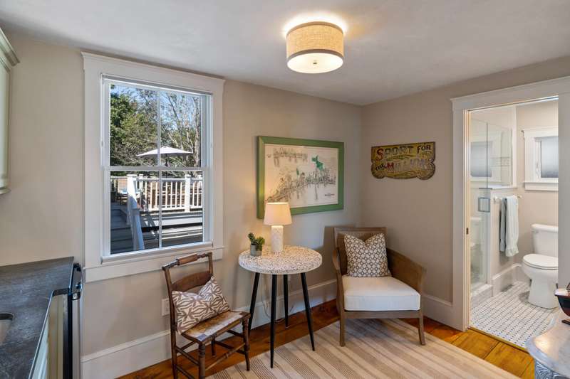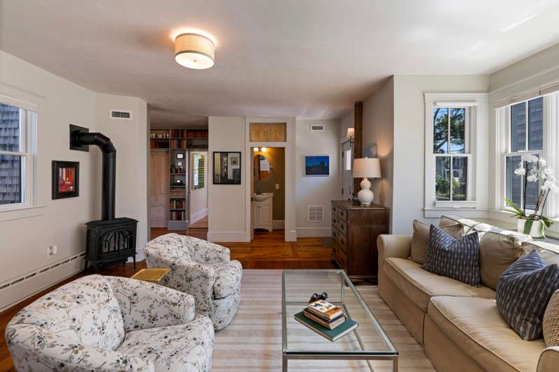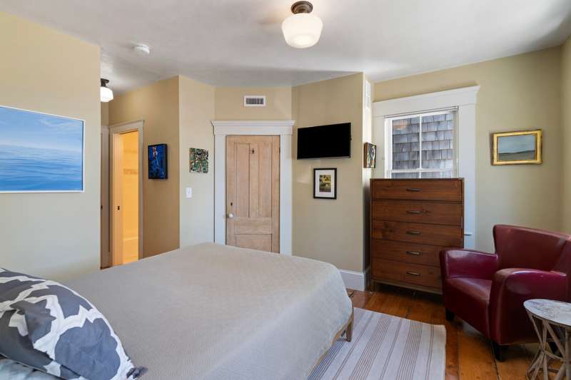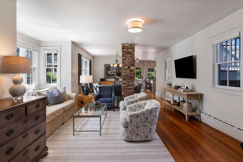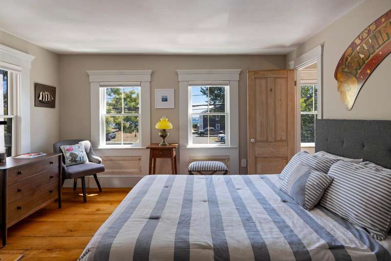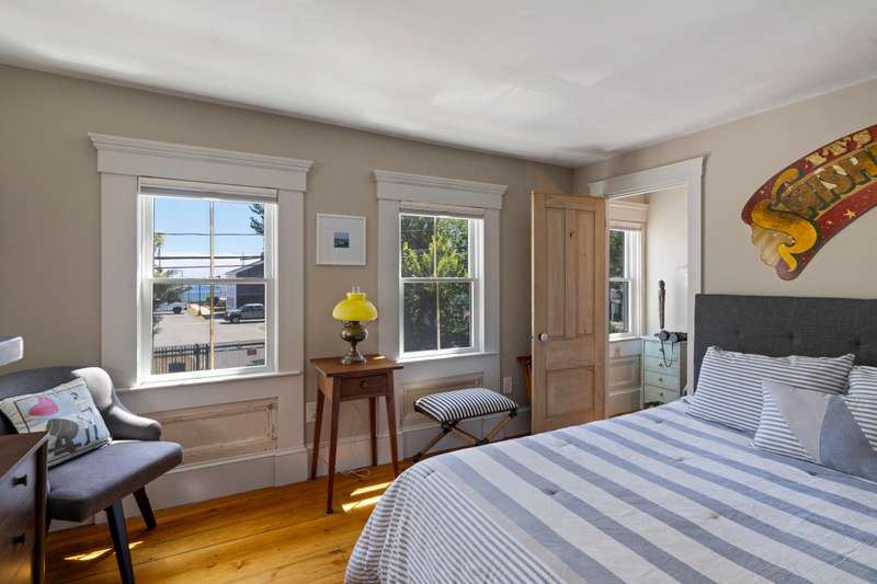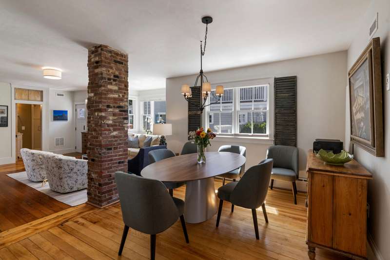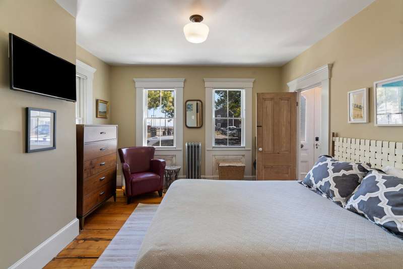 Make Provincetown your OWN with this stunningly beautiful condominium with a large front patio directly across from the Coast Guard Station! Located at the iconic bend of Commercial Street in the West End, this historic property was the beloved home of the Days Family for over a century. In 2015 it was meticulously converted into two spacious 3BR/3BA condominiums. This 1555sf home occupies the entire first floor and a portion of the second. The renovation retained many of the original details including hardwood flooring, interior doors and hardware, and the freshly restored antique doors facing Commercial Street. New plumbing, electrical, insulation, windows, mechanical systems, kitchen, and baths offer the comforts of modern living. The first floor features a spacious living room with a bay window and a gracious dining area, all open to the kitchen. The huge kitchen features soapstone countertops, stainless Jenn-Air appliances, and ample storage. A kitchen island provides additional s