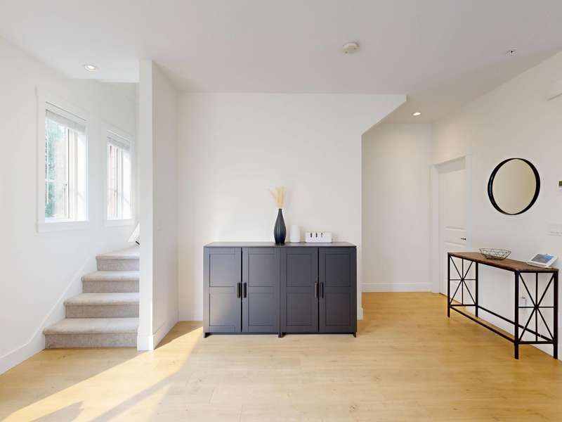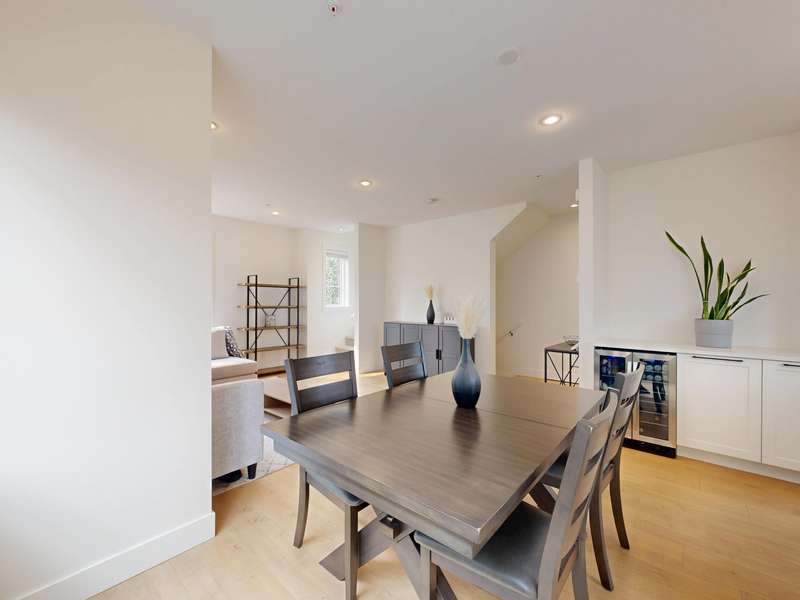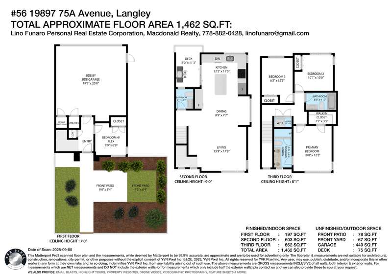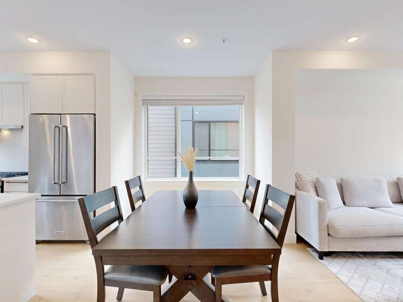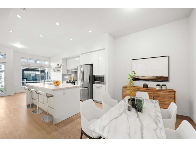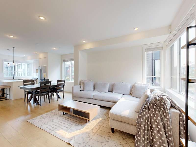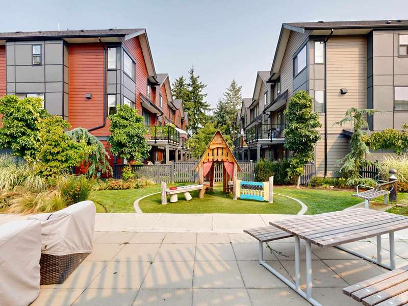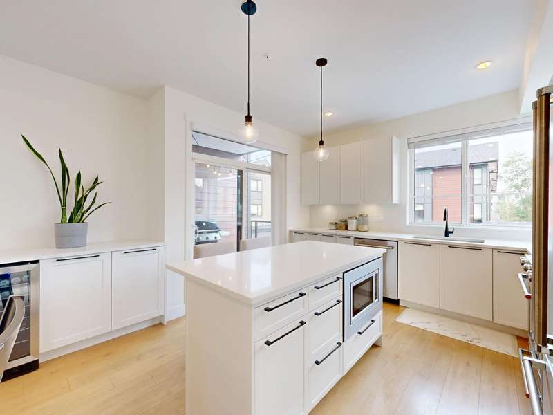 Elevate your lifestyle in this stunning, modern and highly sought-after corner unit townhome nestled in the heart of Langley’s vibrant Willoughby Heights. This bright and spacious 4-bed, 3-bath home boasts 1,462 sqft of stylish living with extra windows providing abundant natural light throughout. The open-concept main floor is perfect for entertaining and offers 9ft ceilings, a gourmet kitchen with large island, quartz countertops, premium KitchenAid appliances, and sleek cabinetry. 3 spacious bedrooms on upper level with additional bed/flex room on lower level. Enjoy year-round comfort with forced air heating, A/C, and on-demand hot water. Side-by-side double garage with EV charging and ample storage. A rare opportunity to own a modern, well-appointed corner unit in a prime location!