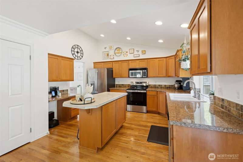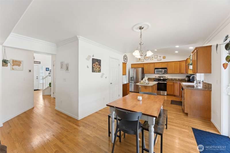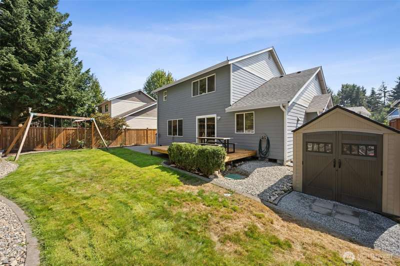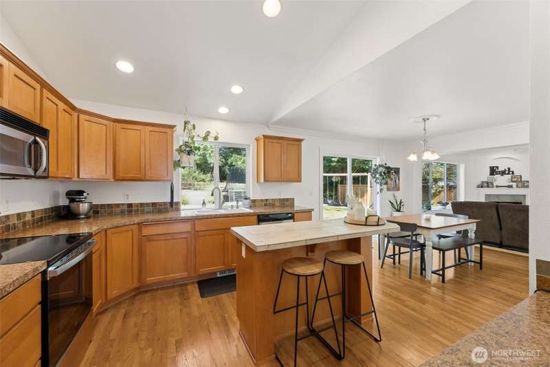 Beautiful spacious 4 bdrm, 2.5 bath, 2172 sq ft home in the Buttes Community! This meticulously kept home offers fenced bkyd w/new deck. Secluded backyard w/greenbelt behind home, outdoor spinkler system, firepit area, garden boxes & 3-car wide drvwy. Newer ext paint 2020, A/C 2021, water heater 2019, Roof 2024. New furnace, carpet, oven & interior paint throughout in 2025. Home offers a large open living room & 2 dining areas. SS appliances & hardwood floors accent the large open concept kitchen w/island & family rm w/gas fireplace. Upstairs offer's a large primary bdrm w/5-piece bthrm, & lrg soaker tub W/wlk-in closet. Home comes with xtra large washer & dryer. This home is in a NON-RTA tax area, saving you a lot of $ on vehicle tabs.