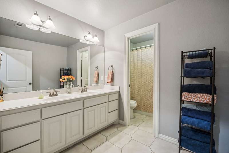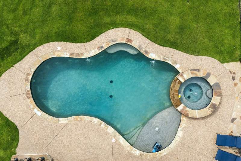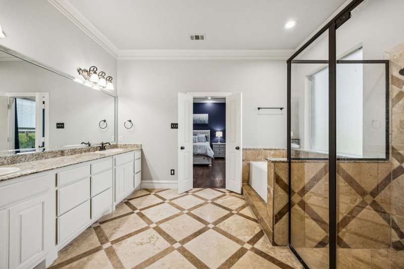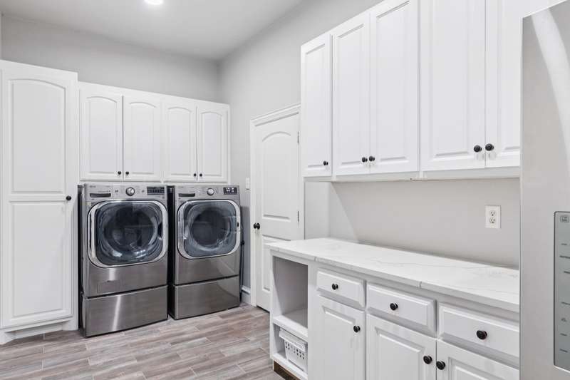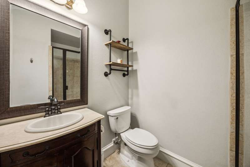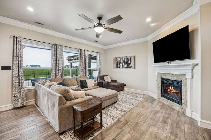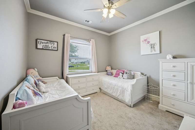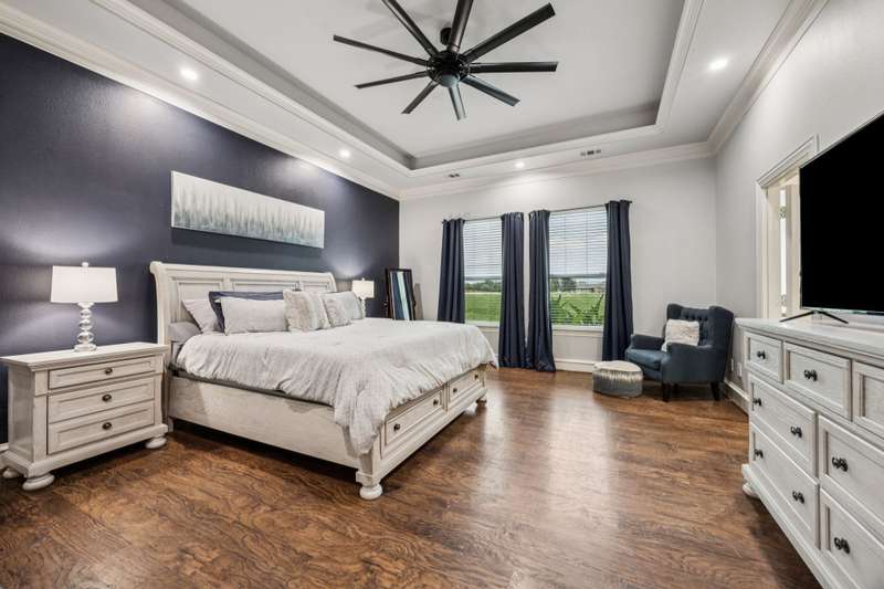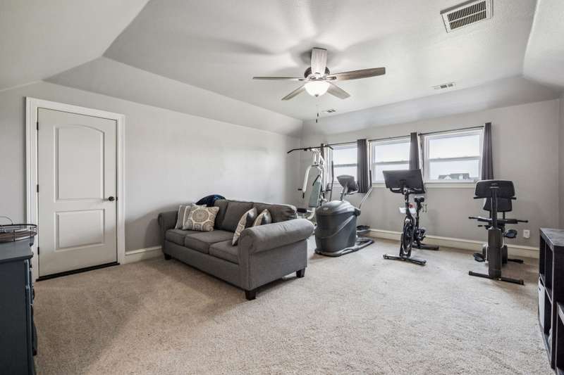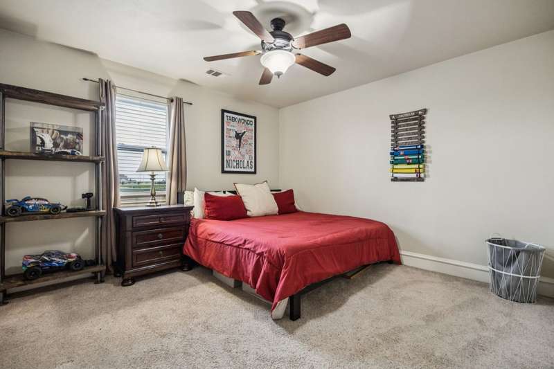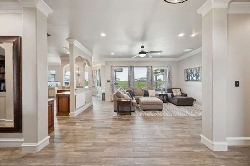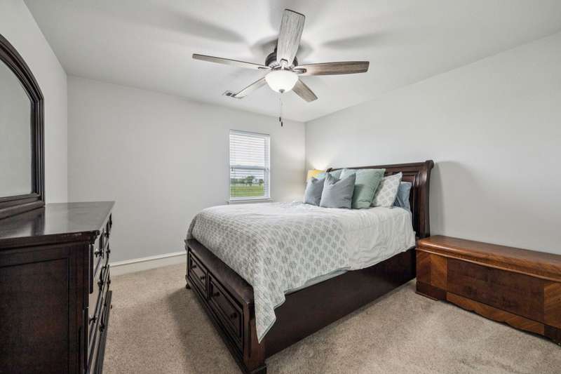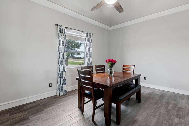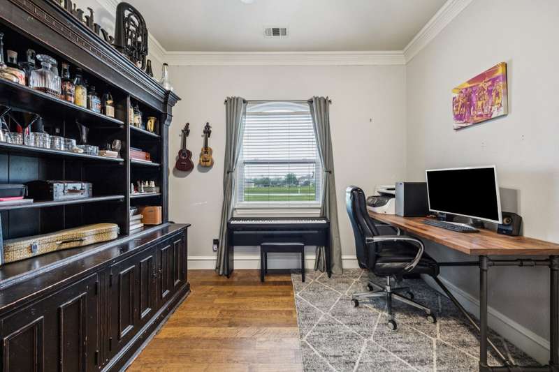 Experience the perfect blend of luxury, functionality, and space set on two acres. Thoughtfully designed, the home features a well-appointed floor plan accented by updated tile and wood flooring throughout. Just off the entryway, a flexible formal dining room or den opens into a welcoming living room complete with a cozy fireplace and scenic views of the expansive backyard. Kitchen is a chefs delight, offering granite countertops, custom wood cabinetry with built-in wine storage, a gas cooktop, and spacious walk-in pantry. The adjacent breakfast nook comfortably accommodates a full-size table for casual dining. A private home office just off the main living area provides a quiet workspace with closing doors. The primary suite is generously sized, easily fitting large furniture and a sitting area. The luxurious en-suite bath includes dual vanities, a large tile walk-in shower, a private water closet, and a spacious walk-in closet. Upstairs, enjoy versatile living with a media or workout room, two additional bedrooms, a full bath, and access to two fully decked atticsideal for abundant, convenient storage. Throughout the home, tinted windows enhance energy efficiency while welcoming natural light. A standout 7.5' x 19' laundry room on the main level offers extensive cabinetry and space for an additional refrigerator. Step outside to your backyard retreat, featuring a saltwater pool with tanning ledge, hot tub, and an outdoor kitchen complete with a kegerator, built-in grill, mounted TV, and pergola. Additional highlights include a 3-car garage, double fencing, and a long driveway leading to a massive 32' x 40' shop with 16-ft ceilings, dual drive-thru doors, multiple windows, spray foam insulation, and full electrical wiring. An 8-ft covered patio extends from the shop, offering even more functional outdoor space. Community features a nature preserve with walking trail, covered playground, pond to launch your own paddle boat or fish, along with a picnic area.