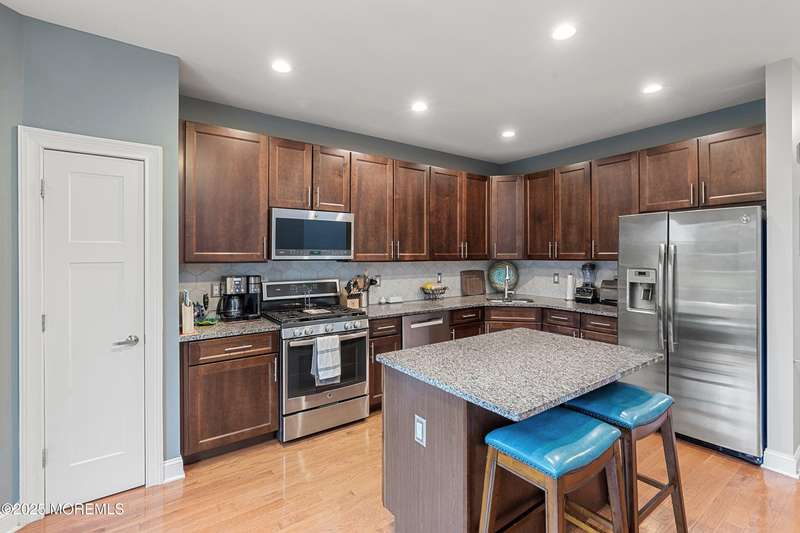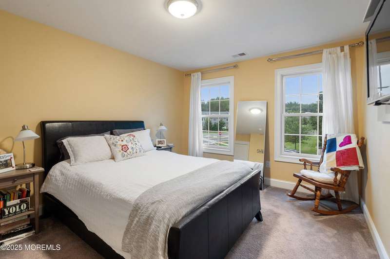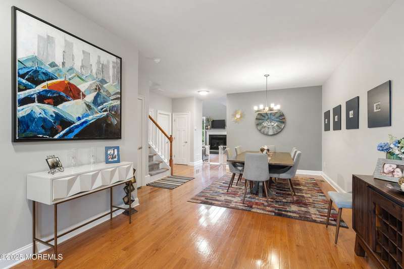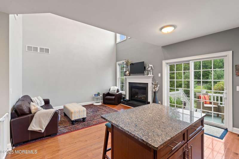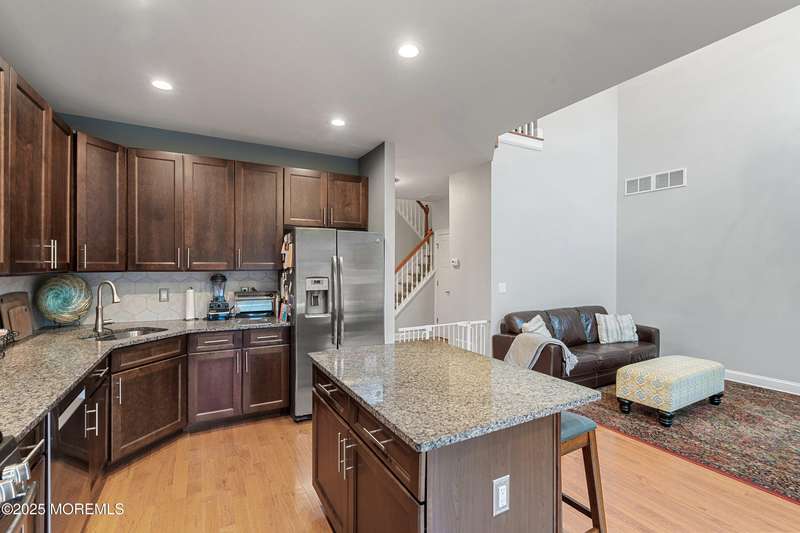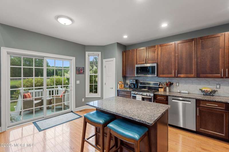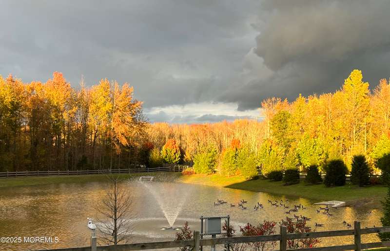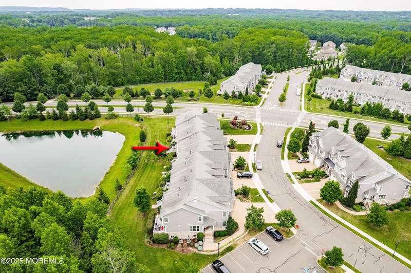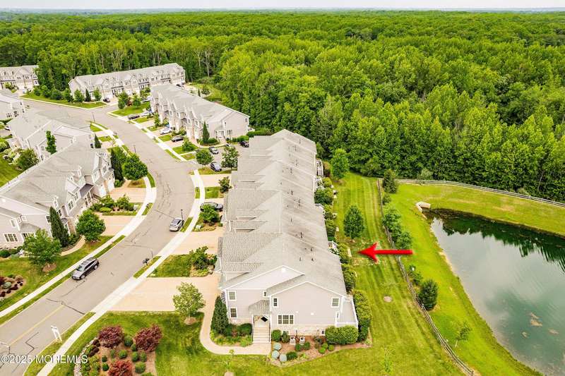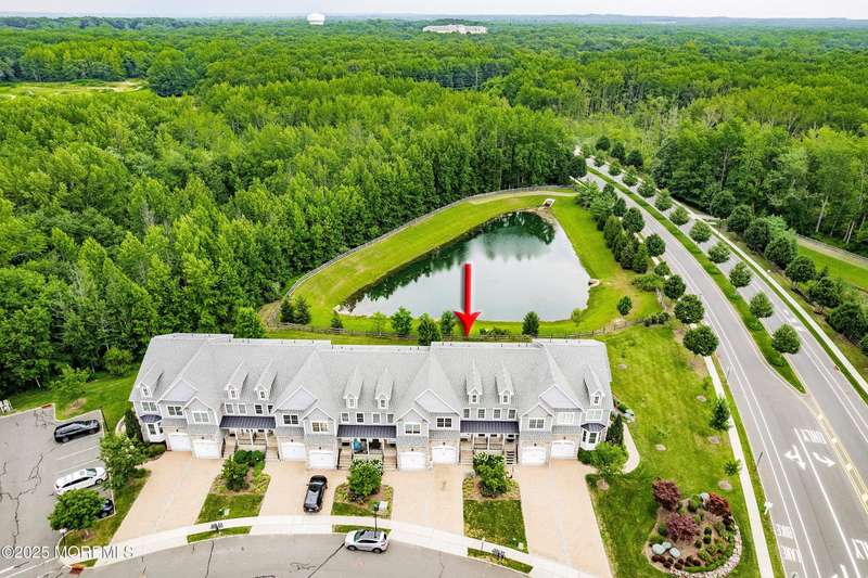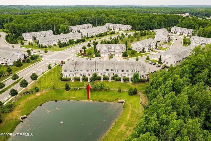 Welcome to your dream home in the Woodhaven community! This beautifully maintained townhouse sits on a premium lot with peaceful views of the pond perfect for relaxing after a long day. With 3 bedrooms, 2.5 baths, a finished basement, and a first-floor powder room, there's plenty of space to live, work, and entertain. Step inside to find gleaming hardwood floors and a bright, open layout. The two-story great room feels grand yet cozy, with a gas fireplace and a ton of natural light. The kitchen is spacious, featuring Quartz countertops, stainless steel appliances, and a center island with seating great for casual meals or hosting friends and family. Upstairs, the primary suite offers a walk-in closet with built-in organizers and a spacious en suite bath with double sinks. Two more generous bedrooms share a full bath, and the second-floor laundry room makes life a little easier. The finished basement is a huge bonus perfect for a home gym, playroom, movie nights, or game days, and it even includes a new bar area. Outside, enjoy the low-maintenance deck overlooking the peaceful backyard. Woodhaven offers great amenities including a pool, clubhouse, playground, tennis and pickleball courts, basketball, and a dog park (pool and gym memberships are separate). Plus, you're close to Rt 9, Rt 18, the GSP, Turnpike, NYC buses, shopping, and restaurants. This one truly has it all location, space, style, and comfort. Come take a look!