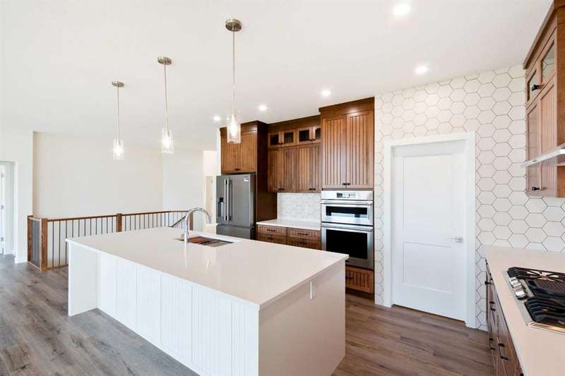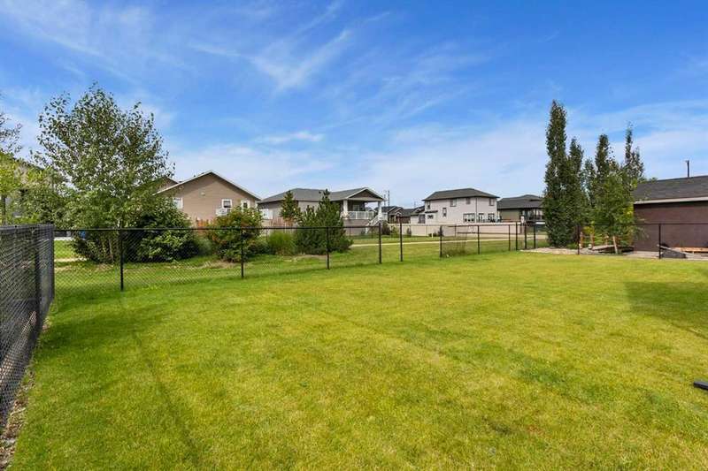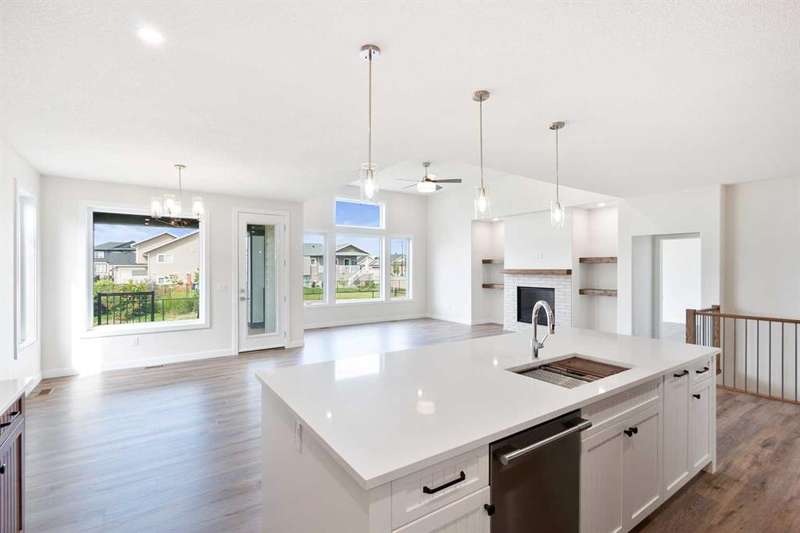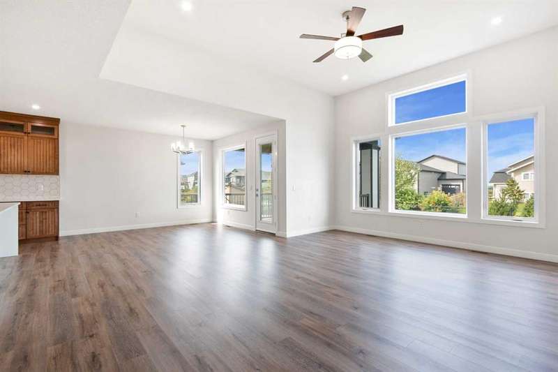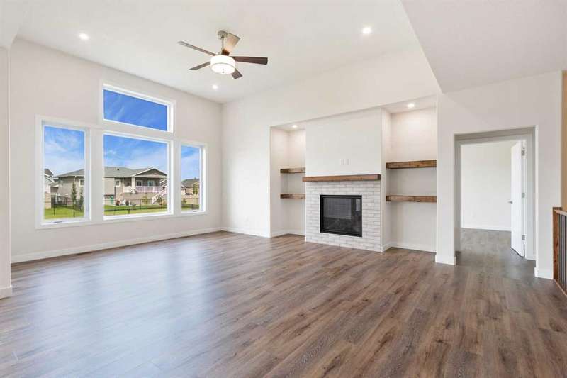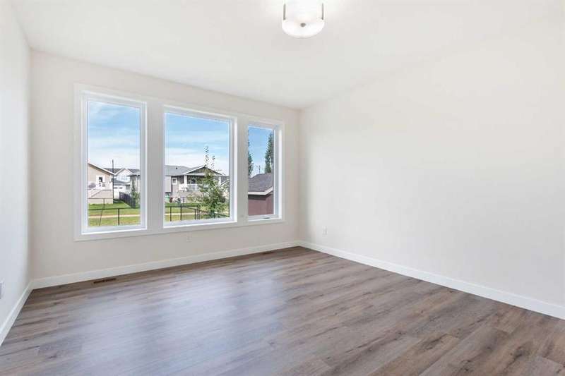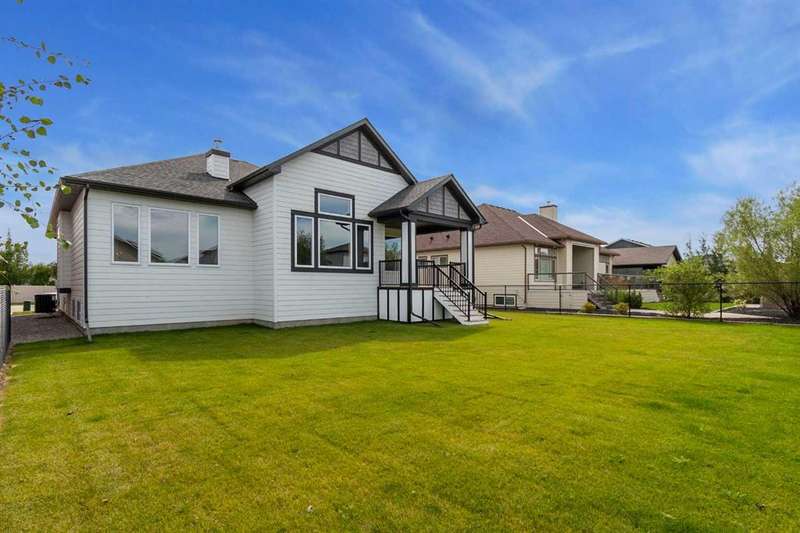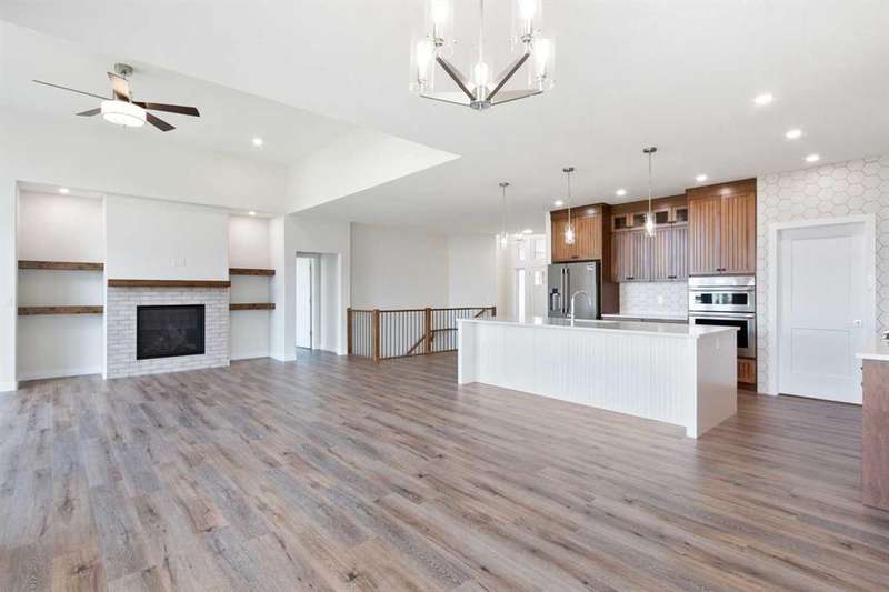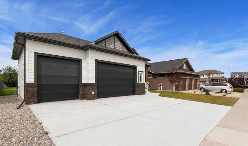 Welcome to this beautifully crafted new-build modern bungalow, perfectly situated in the sought-after Highlands subdivision. Featuring 5 spacious bedrooms and 3 luxurious bathrooms, this home offers the perfect blend of style, comfort, and functionality. Step inside to an impressive open-concept layout, where the heart of the home includes a large living room with a cozy gas fireplace, a generous dining area, and a chef’s dream kitchen complete with quartz countertops, eye-catching tile accents, and a butler’s pantry for added convenience. The main floor features a spacious primary suite with a 5-piece ensuite and a walk-in closet. A second bedroom, large laundry room, and access to the triple attached heated garage complete this level. Downstairs, you'll find three additional well-sized bedrooms, a 4-piece bath, a large recreation room, and a wet bar, making this the perfect space for entertaining or relaxing. There’s also a massive utility room offering plenty of storage. Enjoy outdoor living with a low-maintenance covered front porch, fully landscaped front and back yards, and a covered rear deck that backs on to a open area with a walking path ideal for entertaining or enjoying your morning coffee. This home truly checks all the boxes for modern living in a prime location. Don’t miss your chance to call it home!