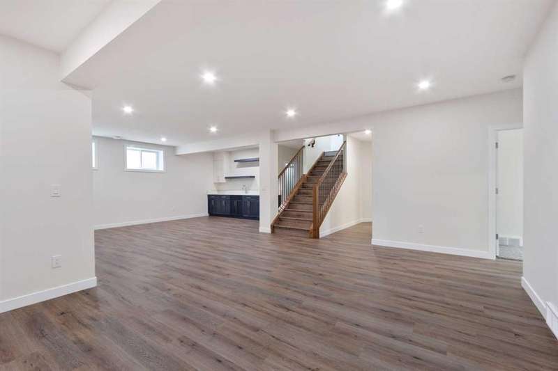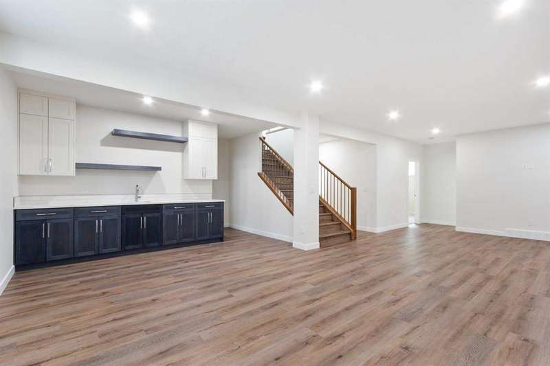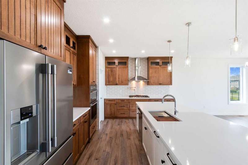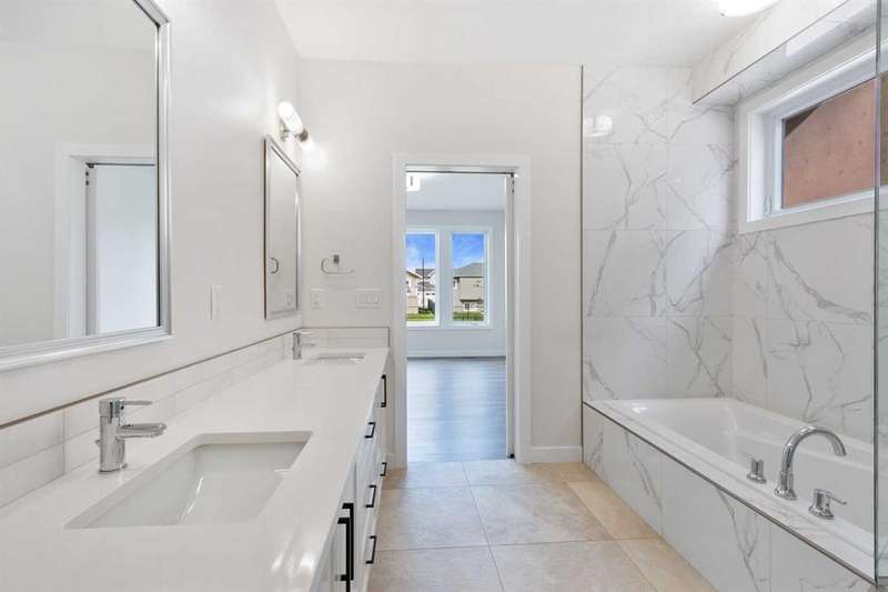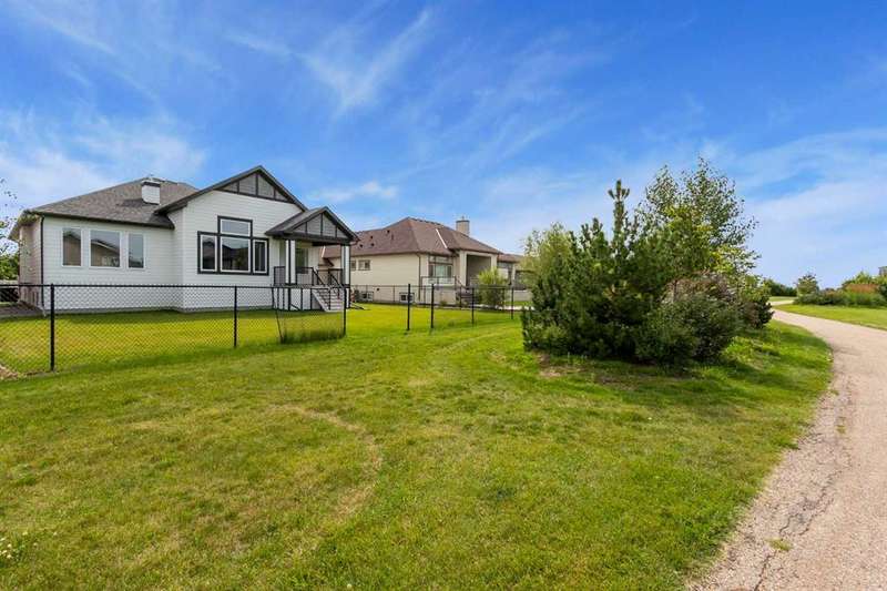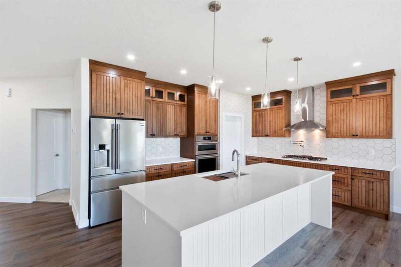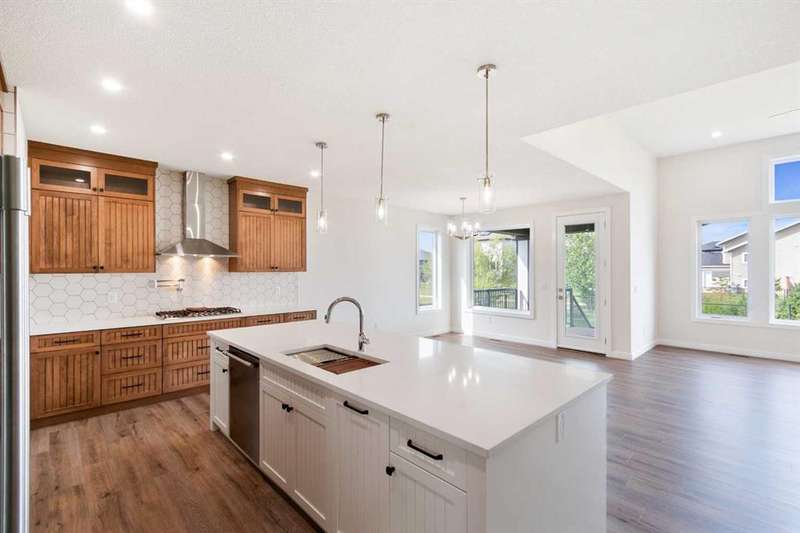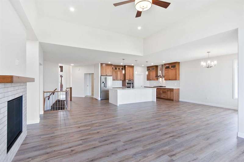 Welcome to this beautifully crafted new-build modern bungalow, perfectly situated in the sought-after Highlands subdivision. Featuring 5 spacious bedrooms and 3 luxurious bathrooms, this home offers the perfect blend of style, comfort, and functionality. Step inside to an impressive open-concept layout, where the heart of the home includes a large living room with a cozy gas fireplace, a generous dining area, and a chef’s dream kitchen complete with quartz countertops, eye-catching tile accents, and a butler’s pantry for added convenience. The main floor features a spacious primary suite with a 5-piece ensuite and a walk-in closet. A second bedroom, large laundry room, and access to the triple attached heated garage complete this level. Downstairs, you'll find three additional well-sized bedrooms, a 4-piece bath, a large recreation room, and a wet bar, making this the perfect space for entertaining or relaxing. There’s also a massive utility room offering plenty of storage. Enjoy outdoor living with a low-maintenance covered front porch, fully landscaped front and back yards, and a covered rear deck that backs on to a open area with a walking path ideal for entertaining or enjoying your morning coffee. This home truly checks all the boxes for modern living in a prime location. Don’t miss your chance to call it home!