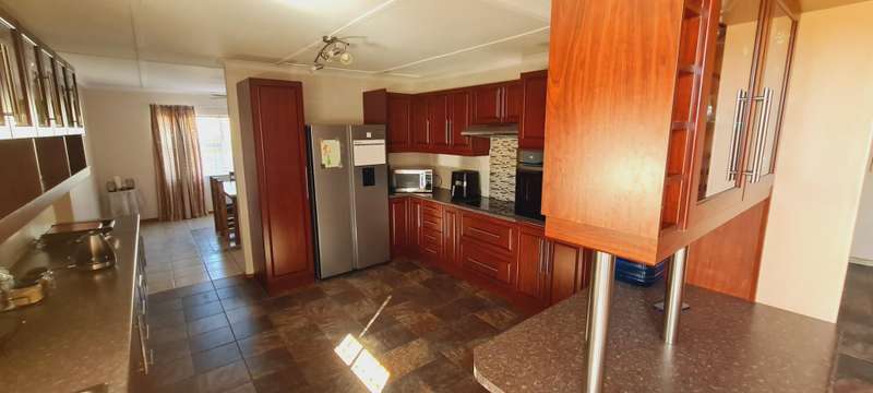 IMMACULATE 5-BEDROOM HOUSE FOR SALE! Looking for a home that offers space, style, and a peaceful location, then this one is not to be missed! Located in a quiet, family-friendly street in Harmony Close, Springbok, this beautifully maintained property is the perfect place to call home. Double garage with automated doors. Small maintainable garden. This property offers a spacious modern kitchen, leading to the braai room with built-in braai and bar and enclosed deck, as well as a guest toilet. The four bedrooms have built-in cupboards with two upgraded full bathrooms of which one is ensuite to the main bedroom. The fifth bedroom is separate with its own bathroom, kitchenette, and living area which opens up to a balcony. .
