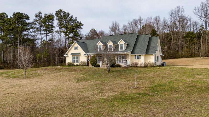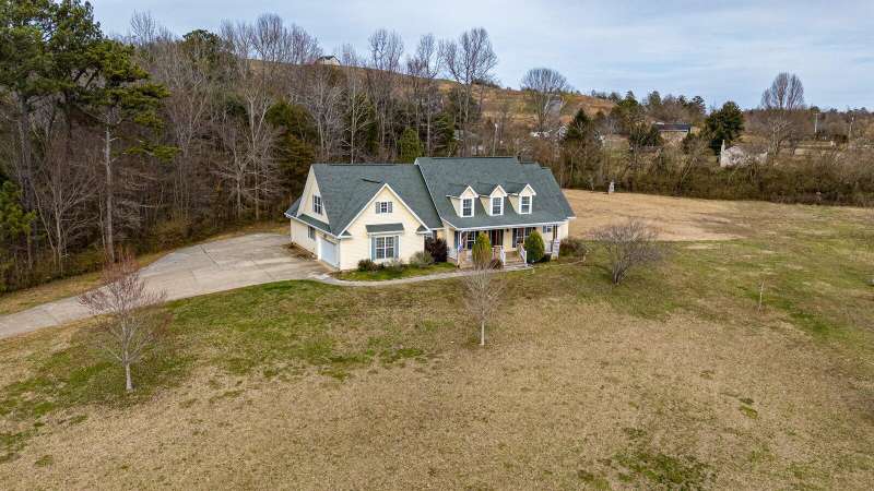 PRICE IMPROVEMENT--SELLER IS MOTIVATED!! Enjoy the beautiful mountain views with your own private stocked pond, and the serenity of over 3 acres. When you walk in this beautiful over 4000 square feet home, you will notice the foyer's gleaming hardwood floors, leading to the gathering room with a gas log fireplace, dining room, well equipped kitchen, breakfast area, and access to a private screened porch. The bedrooms are split with the primary bedroom and roomy ensuite featuring separate vanities, jetted tub, walk-in closets, and water closet all located on one side of the house and on the opposite side of the house is 3 nice sized guest bedrooms and two full baths. Also, conveniently located on the main level is a nice laundry room. Upstairs is a guest bedroom and a full bath, and massive spaces that could be used for whatever you want such as rec room, office with library, crafts, etc. You can access the private backyard via your screened porch. Additionally, in the back yard there is an outbuilding with electricity. Leading from the end of the driveway you will see the pond that is ready for enjoying. In that same area is a cabin that the seller said had been used occasionally for guests. The cabin also contains the switch to engage the well pump to fill the pond, when it gets low on water. Owner has recently had the entire interior freshly painted, exterior painted shutters, new carpet installed in all bedrooms, and living room. In addition to all these updates the owner has made improvements in the hardwood floors, and bath vanity. A survey was completed in May 2025 of the 3 parcels that make up the 3.3 acres. HOME IS BEING SOLD ''AS IS''. THIS IS AN AMAZING HOME AND A MUST SEE!! The buyer is responsible to do their due diligence to verify that all information is correct, accurate, and for obtaining any and all restrictions for the property. The number of bedrooms listed above complies with local appraisal standards.