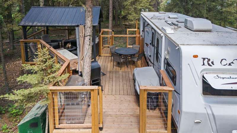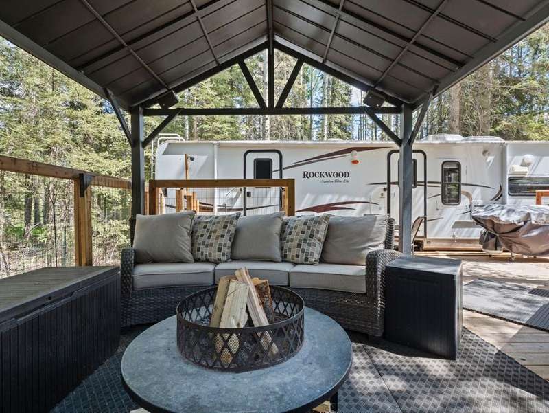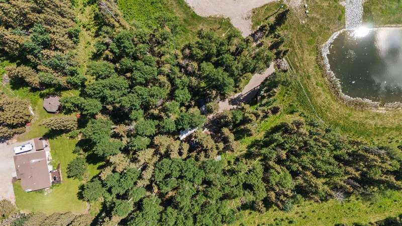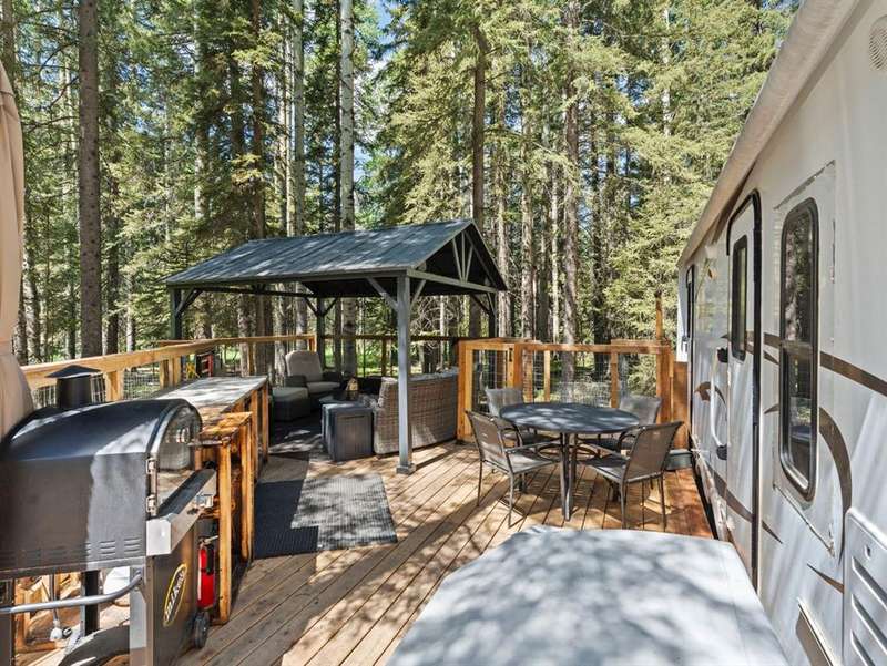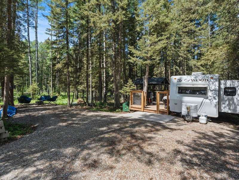 Tucked away just minutes from Sundre in a private gated community, this stunning 1-acre treed parcel offers the ultimate blend of seclusion, security, and serenity. Towering evergreens and mature aspens provide a natural canopy, giving this property a true forested feel — perfect for anyone seeking a peaceful escape or weekend retreat. The lot is serviced with 200amp power, and thoughtfully improved with a gravel driveway, outdoor entertaining deck, and custom gazebo. A beautifully built-out RV setup (RV negotiable) features an expansive wooden deck with designated seating and dining areas, BBQ space, and even a built-in firepit lounge — all nestled under the trees. There’s also a shed/watercloset for extra, and ample parking for guests. Backing onto green space and steps from a community pond, this lot is located in a well-maintained, quiet cul-de-sac — offering a secure, community-driven environment that still feels like your own slice of wilderness.