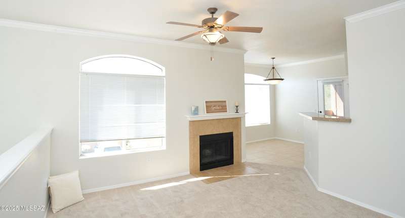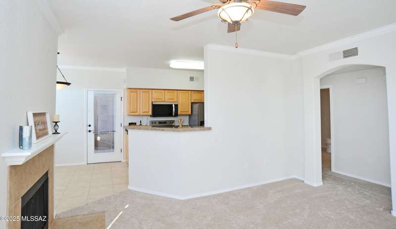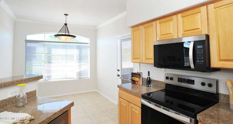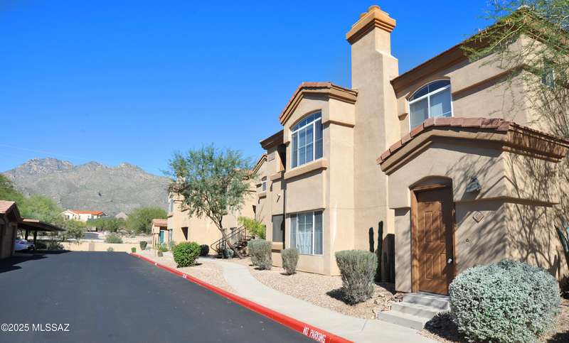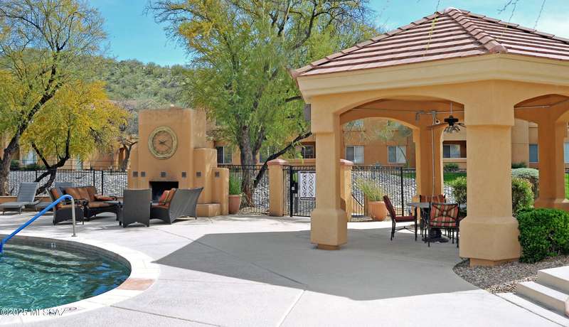Charming two-bedroom, two-bath condo in the desirable gated community of Pinnacle Canyon! This move-in ready home features fresh two-tone paint, new carpet, and all-new energy-efficient stainless steel appliances. The open-concept floor plan offers a cozy wood-burning fireplace, a dining nook, a charming kitchen with granite tile countertops. Spacious primary bedroom with a large walk-in closet and access to the private balcony to enjoy the sunsets. Enjoy resort-style living with community amenities that include a heated pool & spa, large clubhouse, and fitness center, BBQ areas, and beautifully maintained grounds. Conveniently located near shopping, dining, and outdoor recreation including Sabino Canyon, a perfect place to call home or a low-maintenance getaway gated to lock and leave!