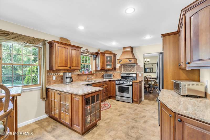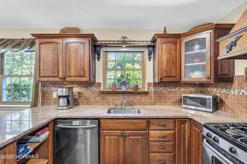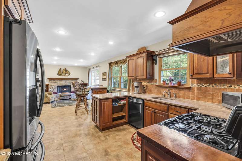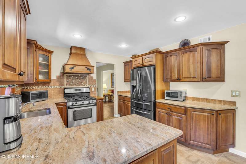 Welcome to this beautifully maintained 3-bedroom, 2.5-bath home in the highly sought-after Georgetown neighborhood of Toms River. Step inside to discover gleaming wood tile floors and a natural flow that leads you into the heart of the home - the updated kitchen, featuring granite countertops, timeless cabinetry, an upgraded stove hood, and high-quality finishes that perfectly balance charm and practicality. The warm and welcoming sitting area is the ideal gathering space, highlighted by a beautiful stone gas fireplace, recessed lighting, and sliding glass doors that bathe the room in natural light while offering easy access to your backyard retreat. A thoughtfully placed powder room on the main level provides added convenience for guests. Upstairs, you'll find three generously sized bedrooms and two full updated baths, including an en-suite in the primary bedroom, providing plenty of comfort and space for everyone. Outdoors, enjoy your own private oasis with an in-ground pool, mature landscaping, and a park-like corner lot, perfect for relaxing summer days or hosting unforgettable gatherings. With its combination of charm, practicality, and endless potential to add your personal touch, this home is truly a must-see. Don't miss your chance to make this Georgetown gem your forever home - schedule your showing today!