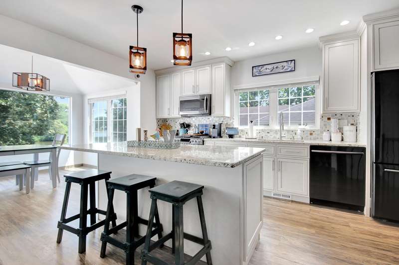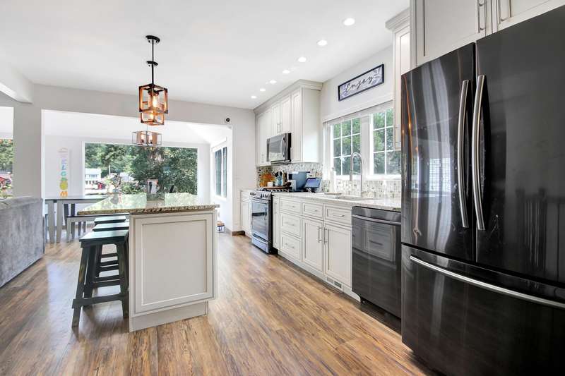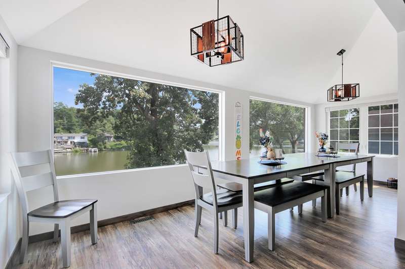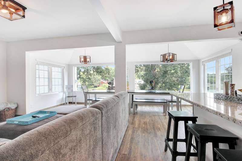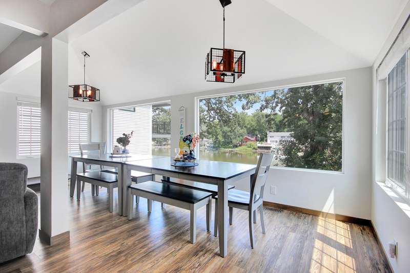 Lakefront luxury awaits on beautiful Lake Dalecarlia in this fully remodeled, move-in ready home with breathtaking views from every level. Offering 3 bedrooms, 2 baths, and a finished walkout basement, this open-concept home features wood laminate flooring, custom doors and trim, and a gorgeous kitchen with granite counters, upgraded maple cabinetry, stainless steel smoked-glass appliances, and a breakfast bar. The spacious dining area opens to a bright great room, while the primary suite boasts a spa-like bath with double vanity. Outdoor living is unmatched with new Trex decking from the top level to the pier, multiple decks and patios, a boat house, pier, and even your own boat--all included along with all furniture, TVs, and pool table. Updates include newer mechanicals, plumbing, Low-E windows, roof tear-off (2017), 200-amp electrical, tankless water heater, and 3-zone high efficiency furnace/central air (2024). Complete with a wireless security system, Lowell Schools, and low taxes, this home is ideal for year-round living or a weekend getaway.