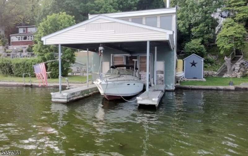 Location Alert! Lakefront Home on Lake Hopatcong! This unique lakefront home offers approximately 100 feet of water frontage with main lake views. Enjoy front-row seats to the spectacular 4th of July fireworks and effortless access to some of the lake's most popular restaurants and bars. Boasting an extraordinarily long dock, an open boathouse with lift that features entry into a spacious basement workshop, this home is tailor-made for boating enthusiasts and tinkerers alike. Multi-tiered patios cascade down toward the water making it perfect for entertaining or simply relaxing and soaking in the scenery. The main house features Andersen windows and was recently outfitted with a new roof. Inside, the layout is thoughtfully designed to showcase the lake: the very large 3 season porch over the boathouse, the living and dining rooms all capture stunning water views, making the most of this unbeatable location. The dining room also features original mid-century design elements and the basement has original bathing suit changing rooms that will appeal to lovers of vintage charm and character. With 3 bedrooms, 2 full baths and a cozy fireplace anchoring the main living space, this diamond in the rough offers character and endless potential. While updating could elevate it further, the location, lot, and architectural possibilities make this a rare chance to craft a dream lakefront retreat. This home is being sold AS IS.