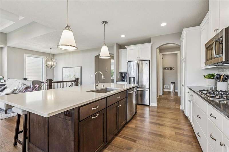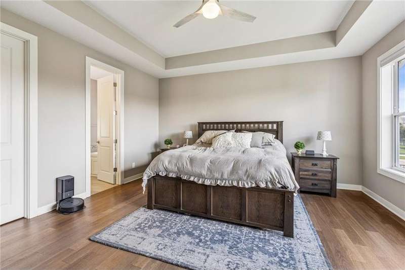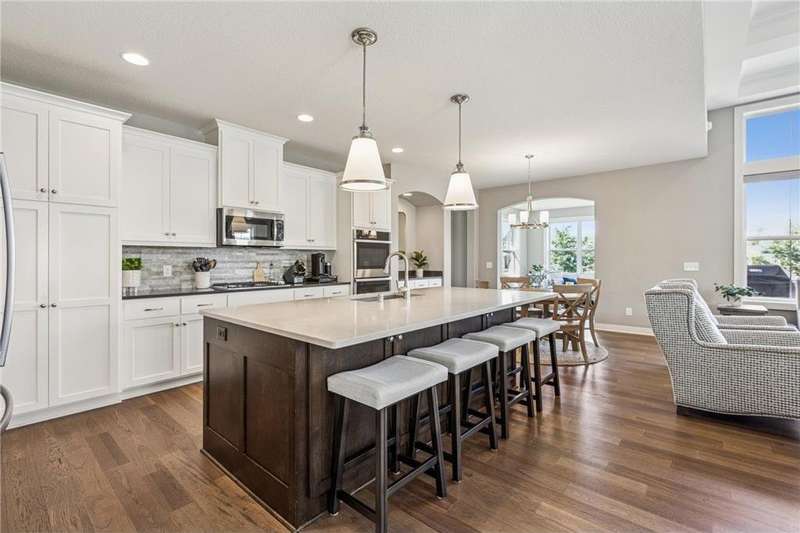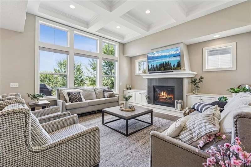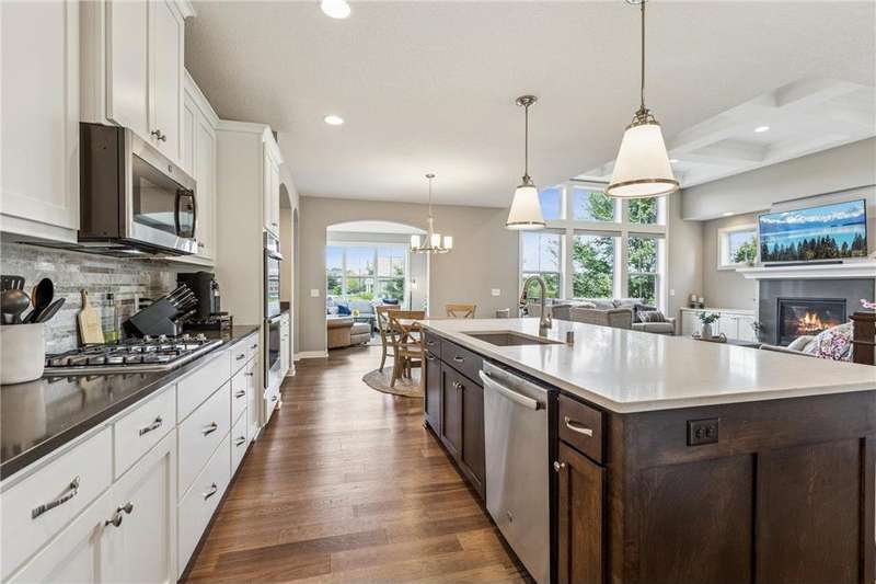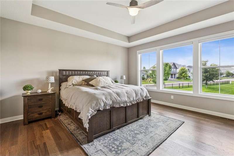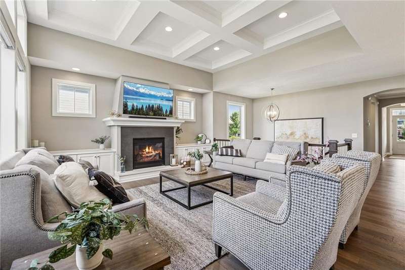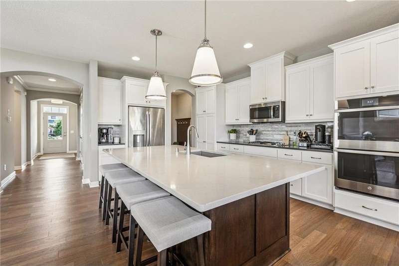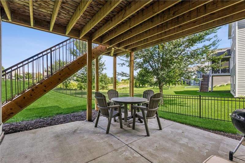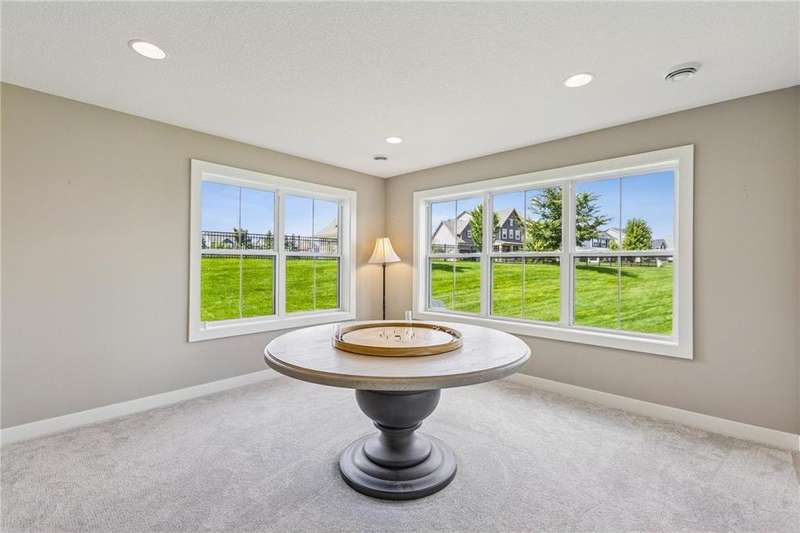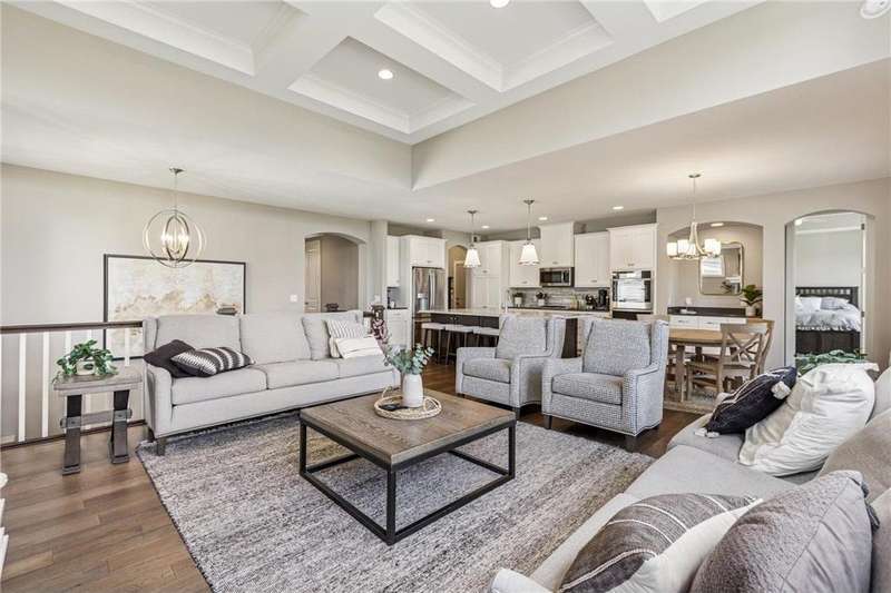 Experience refined luxury in the highly sought-after Tributary Crossing! Perfectly situated across from Fox Hollow Golf Course, with direct access via a private underground tunnel. This exceptional neighborhood offers a lifestyle like no other, with shared amenities including a heated community pool, playground, walking trails, and lake access with a fishing dock and canoe launch. Crafted by Robert Thomas Homes, this former model home blends modern design with custom finishes in a bright, open layout. Soaring 12-foot coffered ceilings in the gathering room, expansive windows, and rich wood flooring create an airy yet inviting atmosphere. The upgraded gourmet kitchen is a chef’s dream, showcasing premium cabinetry, an oversized island, and quartz countertops. The fully finished walk-out lower level is perfect for entertaining, while the fully fenced backyard provides privacy and space to relax. And with the heated pool just steps away, you’ll enjoy a true resort-style experience year-round.