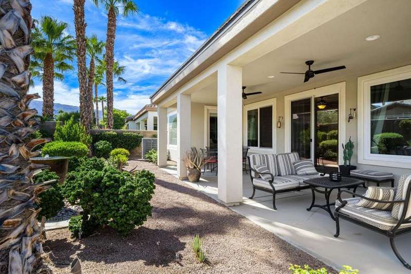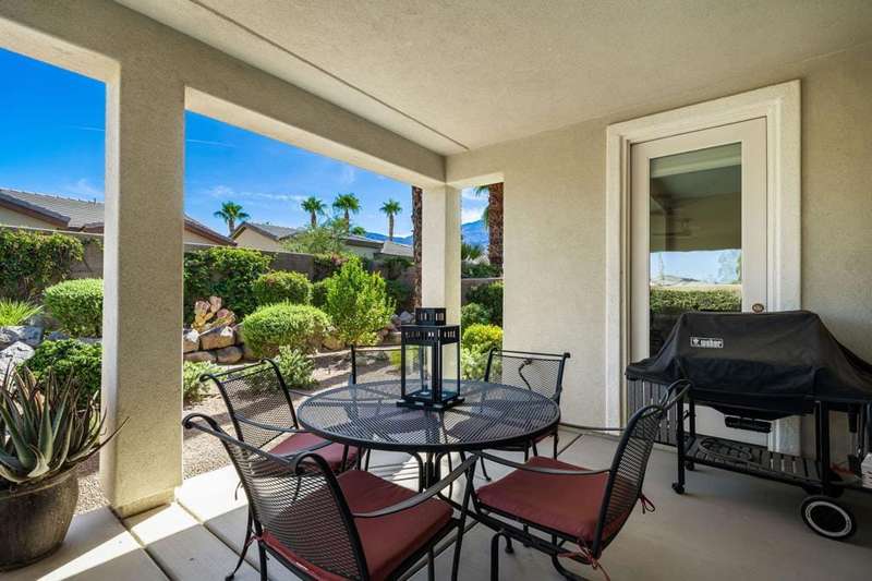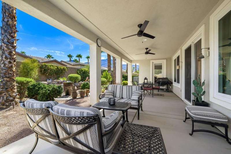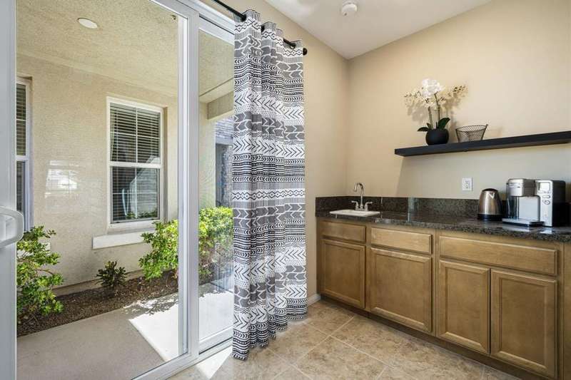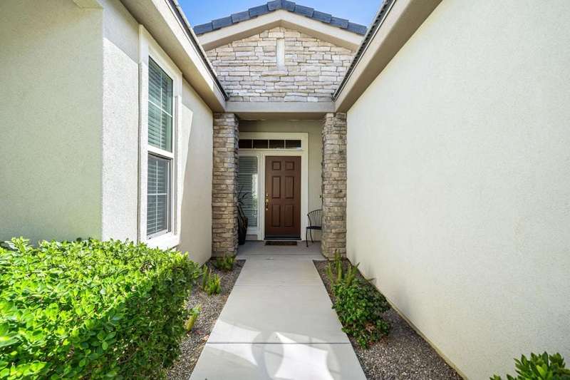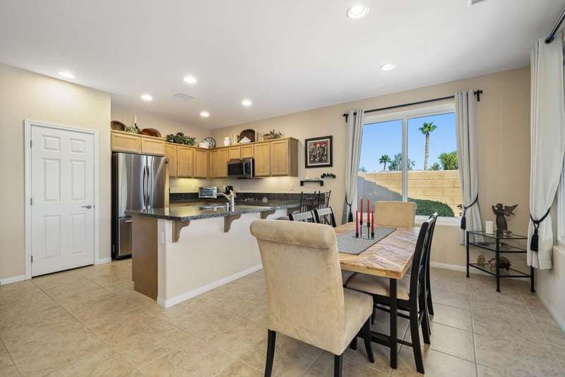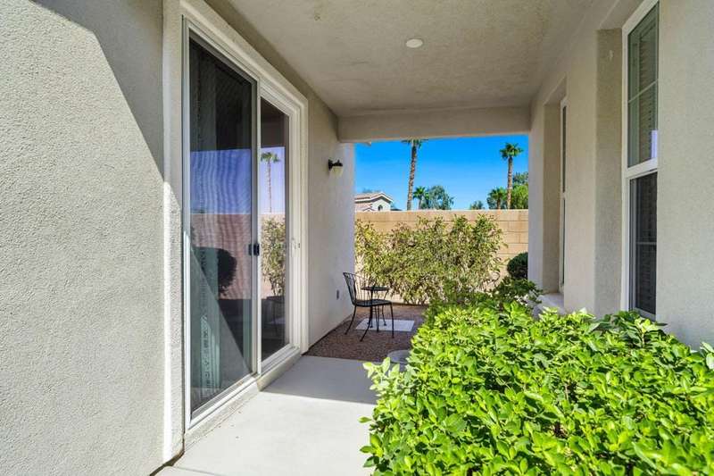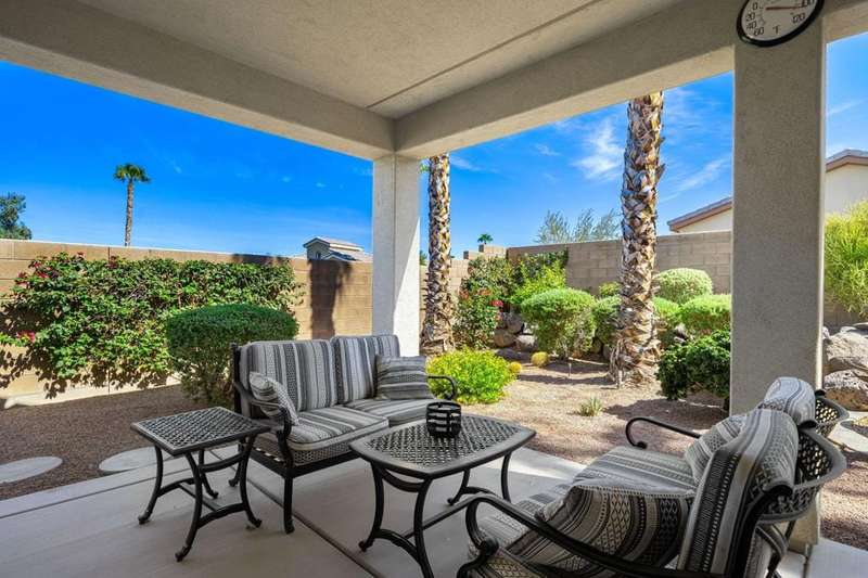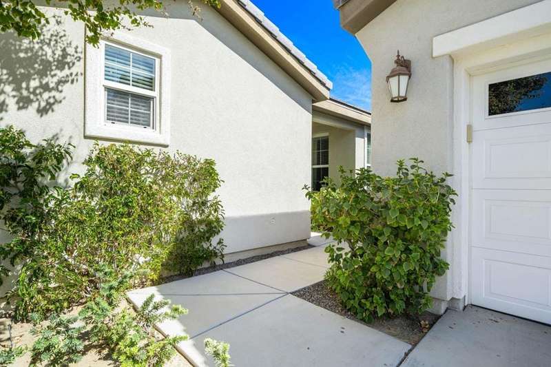 This Tuscan facade Maurea plan blends style and function with 1,641 sq. ft. of open-concept living, plus a detached casita complete with mini-split A/C, coffee station with sink, and full bath with tub/shower combo--perfect for guests. The main residence showcases 3 bedrooms and 3 baths, a spacious great room with TV/media niche and patio access, and a chef-inspired kitchen featuring stainless steel appliances, gas cooktop, granite slab counters, built-in oven/microwave, breakfast bar, abundant cabinetry, and a generous pantry. The primary retreat impresses with upgraded Berber carpet, bay window, exterior French door, and spa-like en suite with dual vanities and a travertine shower and counters. Multiple guest accommodations ensure comfort and privacy, while the backyard oasis boasts an extended covered patio, concrete decking, lush landscaping, and a tranquil water feature--ideal for entertaining or unwinding in style.