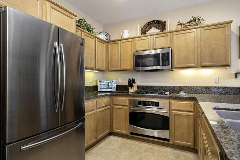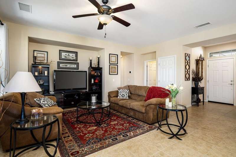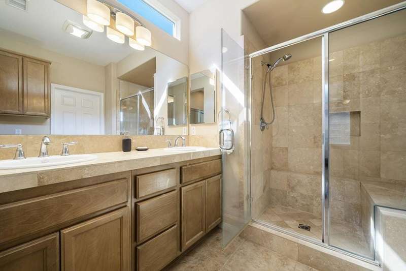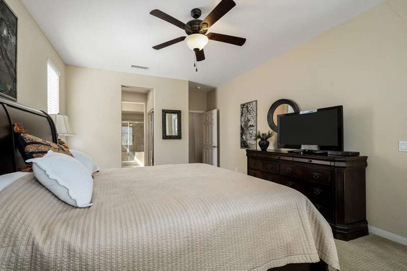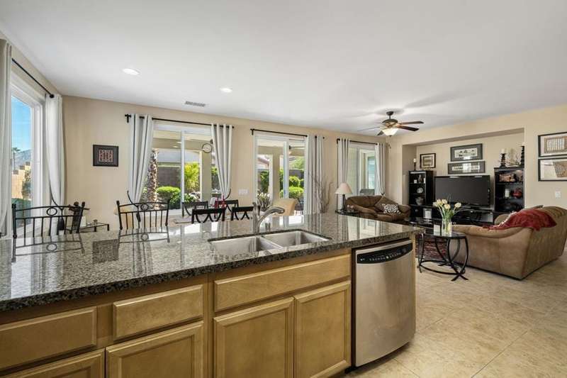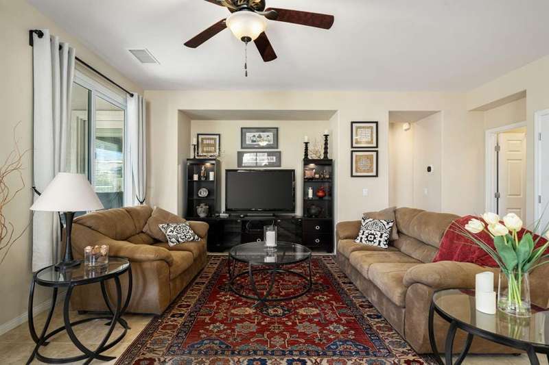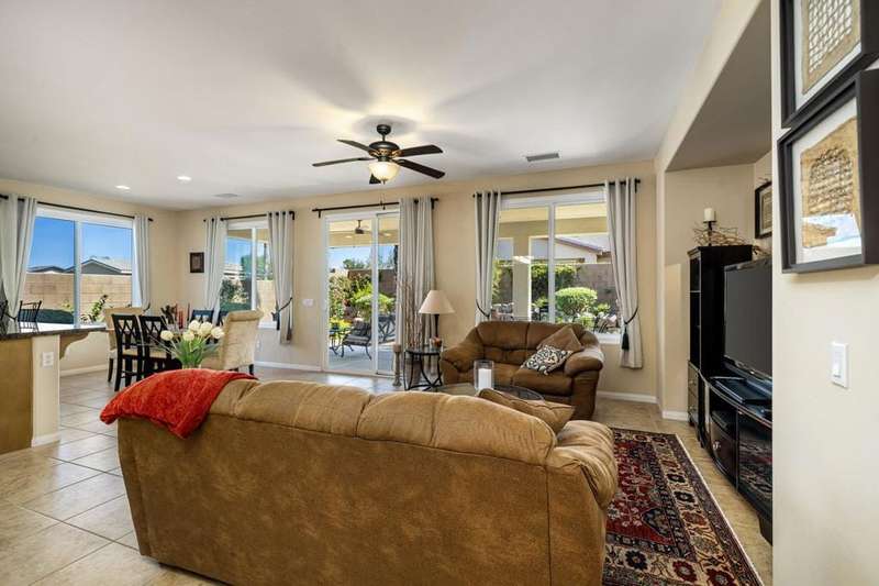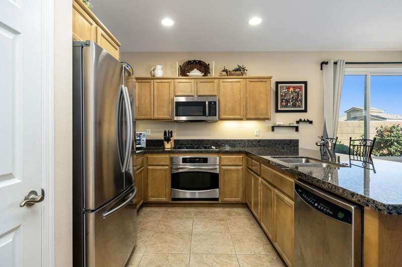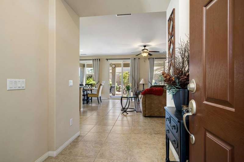 This Tuscan facade Maurea plan blends style and function with 1,641 sq. ft. of open-concept living, plus a detached casita complete with mini-split A/C, coffee station with sink, and full bath with tub/shower combo--perfect for guests. The main residence showcases 3 bedrooms and 3 baths, a spacious great room with TV/media niche and patio access, and a chef-inspired kitchen featuring stainless steel appliances, gas cooktop, granite slab counters, built-in oven/microwave, breakfast bar, abundant cabinetry, and a generous pantry. The primary retreat impresses with upgraded Berber carpet, bay window, exterior French door, and spa-like en suite with dual vanities and a travertine shower and counters. Multiple guest accommodations ensure comfort and privacy, while the backyard oasis boasts an extended covered patio, concrete decking, lush landscaping, and a tranquil water feature--ideal for entertaining or unwinding in style.