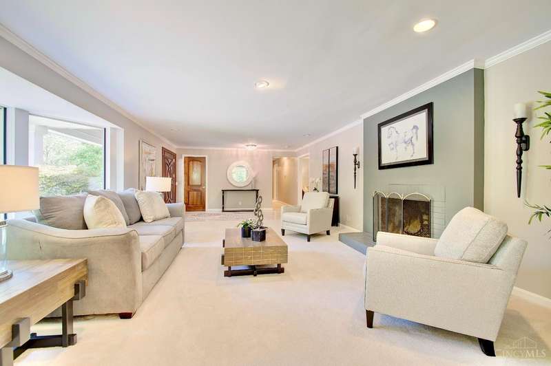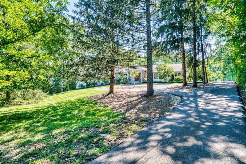 Sprawling 8200 sqft ranch nestled on 3 acres in prestigious Indian Hill. This beautifully designed home is where modern elegance meets everyday comfort. With Seven bdrms, 6.5 baths, 2 kitchens, and 2 laundry rooms, there's room for everyone to live, relax, and entertain in style. Clean lines and a sleek, contemporary feel flow throughout, complemented by warm touches like 5 gas fireplaces including a stunning dual-sided FP and a classic wood-burning fireplace. The spacious open kitchen is flooded with daylight from the wall of windows with a hearth room that invites gathering. The primary suite is a serene retreat with a luxurious bath, dressing room, huge WIC. All new Pella windows bring in natural light and energy efficiency. Added perks include surround sound, 3 HVACs, 2 attic fans, new circular driveway. The covered patio and flat private rear yard has endless potential. This is a rare opportunity in one of Ohio's most desired neighborhoods.