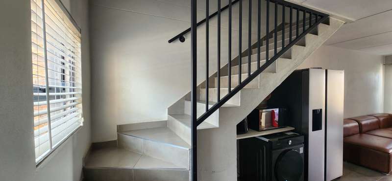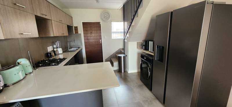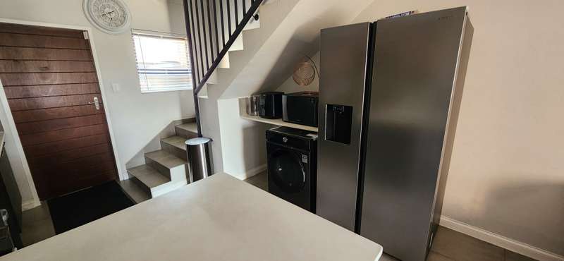 This stunning duplex in a security complex features: 3 bedrooms (MES) upstairs main bedroom leads out to a balcony modern fully fitted kitchen open plan reception patio 2 bathrooms garden double garages solar geyser access controlled with automated gate and 24 hour security lock up & go Viewings for pre-qualified clients will be arranged by appointment. Contact me to assist with your pre-approval,