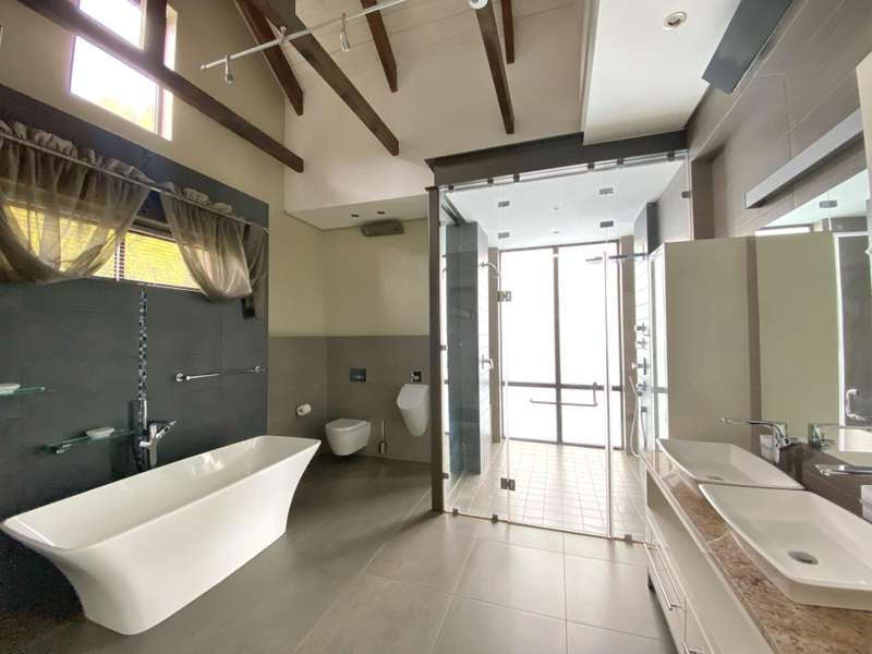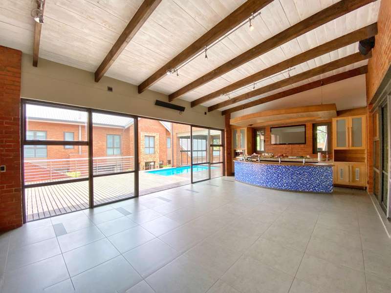 This immaculate 3 bedroom, 4 bathroom family residence (all en suite) offers refined living in one of the area?ÇÖs most secure boomed streets. Double volume living spaces flow beautifully onto an enclosed patio with a built-in gas braai and rotisserie spit, opening further to a decked, solar-heated pool with an electric cover?Çöideal for effortless entertaining. The country-style kitchen is fitted with an AGA gas and electric stove, complemented by imported Murano chandeliers and premium aluminium sliding doors. Comfort features include full-wall electric heaters, underfloor heating in the bathrooms, an air-cooling system that services the entire home, and a cosy Morso convection stove in the lounge. A built-in sound system with ceiling speakers and two TV?ÇÖs are included. All bedrooms are generously sized, with the main suite offering a double shower and double vanities. This residence's barn-style architecture enhances the sense of space with triple-volume ceilings and extra-height doors. A standout feature is the full basement garage accommodating up to 12 cars, designed so any vehicle?Çöeven low-profile sports cars?Çöcan drive out easily, plus two additional garages on street level. The low-maintenance garden also has full irrigation. Additional highlights include a lift to all three levels, a solar system with a 12kVA 3-phase inverter and 18 panels, security cameras with monitors on all storeys, and the added benefit of being located in a quiet street. This home is one for the family seeking luxury and refined living!