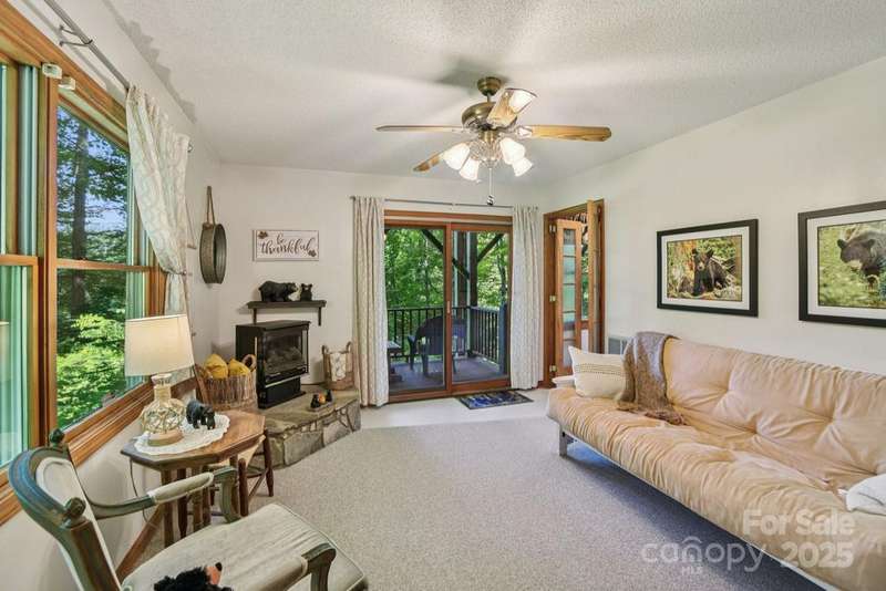 Owner financing available - Immerse yourself in the vibrant fall colors of Western North Carolina from this charming log cabin, perched at 4,300 ft in the heart of Maggie Valley's Smoky Mountains. In less than 15 minutes, you're at the entrance to Great Smoky Mountains National Park?America's most visited national park, teeming with hiking trails, wildlife, and stunning autumn foliage. Just 6 minutes from the iconic Blue Ridge Parkway, where breathtaking overlooks burst with fiery reds, oranges, and golds, this private retreat is your perfect seasonal getaway or a high-demand short-term rental (no restrictions!). Step inside to a light-filled living area with soaring vaulted wooden ceilings, gleaming hardwood floors, and expansive Pella windows and sliding doors that frame mesmerizing mountain vistas. The cozy ambiance, enhanced by recessed lighting, invites you to unwind after a day exploring nearby Soco Falls, a majestic waterfall just minutes away, or premier WNC overlooks ideal for leaf-peeping. The open layout flows seamlessly to a spacious deck?perfect for sipping hot cider while soaking in fall's splendor?accessible from both large bedrooms (each with large windows and walk-in closets) and a versatile bonus room, suited for a home office, extra sleeping space, or game room. Outside, a rare flat circle driveway?uncommon in the mountains?provides easy access and ample parking. Surrounded by nature's tranquility, this cabin ensures unmatched privacy and front-row views of the Smokies' autumn spectacle. For outdoor enthusiasts, you're minutes from prime fishing spots and elk watching in the crisp mountain air, and just 20 minutes from thrilling ski slopes for winter adventures. Bonus Opportunity: An adjacent lot with a well, septic, and driveway already installed is available?ideal for building a second property or ensuring extra seclusion as a privacy buffer. Your dream fall escape starts here?secure this turnkey retreat and experience the magic of WNC's autumn season!