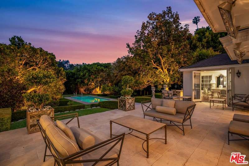 Hidden behind gates in one of Bel-Air's most coveted pockets, this elegant, traditional estate sits on nearly half an acre of beautifully landscaped grounds. Designed for privacy and timeless appeal, the home offers a classic two-story layout with natural light, refined finishes, and effortless indoor-outdoor flow throughout. The main level features a series of warm, welcoming living spaces including a formal dining room, multiple sitting areas, and a spacious kitchen outfitted with top-tier appliances and a sunlit breakfast nook. French doors open to a lush backyard with a resort-style pool, grassy lawn, and multiple terraces for outdoor entertaining. Upstairs, the private quarters include two guest bedrooms and a generous primary suite with a balcony, walk-in closets, and a serene, spa-like bath. A second-floor den or lounge adds flexibility for media, play, or office use. Offering quiet sophistication in a prime Lower Bel-Air location, 10914 Bellagio is the pinnacle of Southern California luxury.