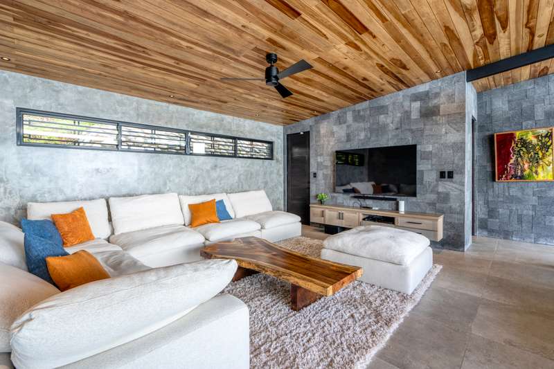 Step into the living space of Hermosa Retreat, a masterpiece of tropical sophistication, where every corner whispers luxury. Here, the indoors seamlessly blend with the outdoors, leading you to an expansive terrace. Imagine lounging on sofas, feeling the gentle breeze, or swaying peacefully in a hammock. This outdoor haven is not just a place but an experience, offering a serene backdrop for relaxation, yoga sessions, or meditative escapes amidst the embrace of nature's splendor.
