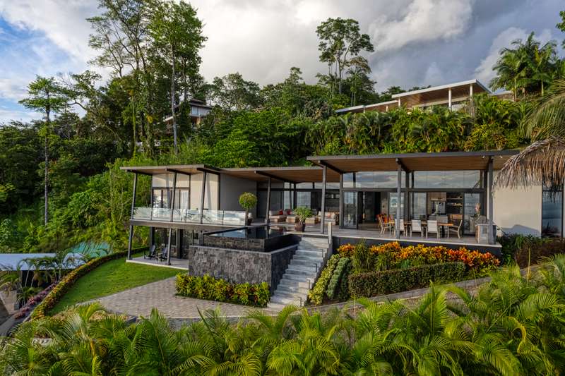 Positioned above the esteemed Whales Tail National Park in Uvita, Costa Rica, this magnificent 5-bedroom house offers vistas that echo the grandeur of Big Sur in California and the charm of the French Riviera. The Hermosa Retreat is a haven of luxury with easy access, designed for those who savor the finer things in life.