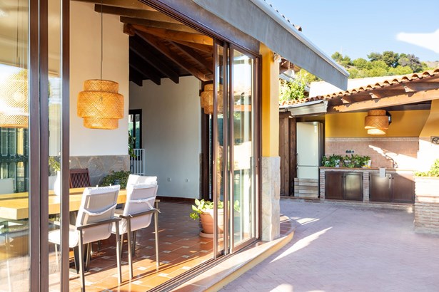We present this wonderful family home located in one of the most sought-after areas of East Málaga. The property enjoys a privileged location: just a short walk from the beach, surrounded by a quiet and safe neighborhood, close to the city’s best schools, and with excellent connections both to the center of Málaga and to the motorway and the airport.Facing south, the house is designed for comfortable family living. It sits on a private plot with a sunny pool, a solarium area with artificial grass, a charming garden with flowers and fruit trees, including a mandarin and a lemon tree, as well as a barbecue area with storage and a spacious porch with two separate seating areas, perfect for gatherings and outdoor dining.The home is distributed across two well-planned levels. On the main floor, you will find a large kitchen with a marble countertop, breakfast area, and plenty of storage space. The bright living room with fireplace opens directly onto the porch, seamlessly blending indoo