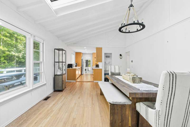 Set on desirable Whalebone Landing Road, this four-bedroom, two-bath home offers sweeping water views and effortless access to a sandy bay beach. This residence is designed for both relaxation and entertaining, with an open first floor layout that includes the kitchen, living room, guest bedrooms, family room, and expansive exterior decking. The second-floor private primary suite features a spa-like bath and its own outdoor deck, creating a secluded retreat within the home. Outdoors, there is ample room for a pool to complement the surrounding landscape. Just two properties to Little Peconic Bay. Perfectly located just minutes from Sag Harbor, Bridgehampton, and Southampton Village-without Route 27 traffic this home combines the serenity of bay access with the convenience to everything the Hamptons has to offer. A rare chance to enjoy sunsets, sandy shores, and the best of coastal living.