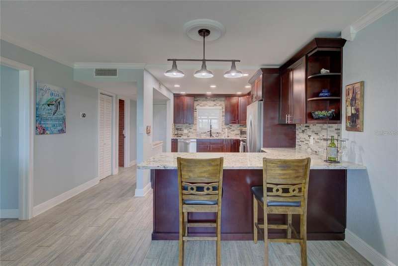 Come enjoy and live “The Florida Lifestyle” in this beautiful beach front condo. Full view of The Gulf Of America and the Intracoastal Waterway. Just steps away from putting your toes in the water and a** in the sand. This condo has been fully remodeled. New kitchen, appliances, bathrooms, flooring, windows, doors and electric shutters on the outside of the balcony space. Everything is new. The condo is fully furnished. The building has a 24-hour security guard and gated entrance. Amenities include pool, hot tub, gas grills, tennis/pickle-ball court. Location is superb with the Shoppes on Sand Key across the street where you will find unique boutiques, well known eateries along the Intracoastal Waterway, etc. There is assigned parking and plenty of guest parking spaces. We will save the sunsets for you, as you enjoy your beverage of choice, on your beautiful balcony. Location...location...location!